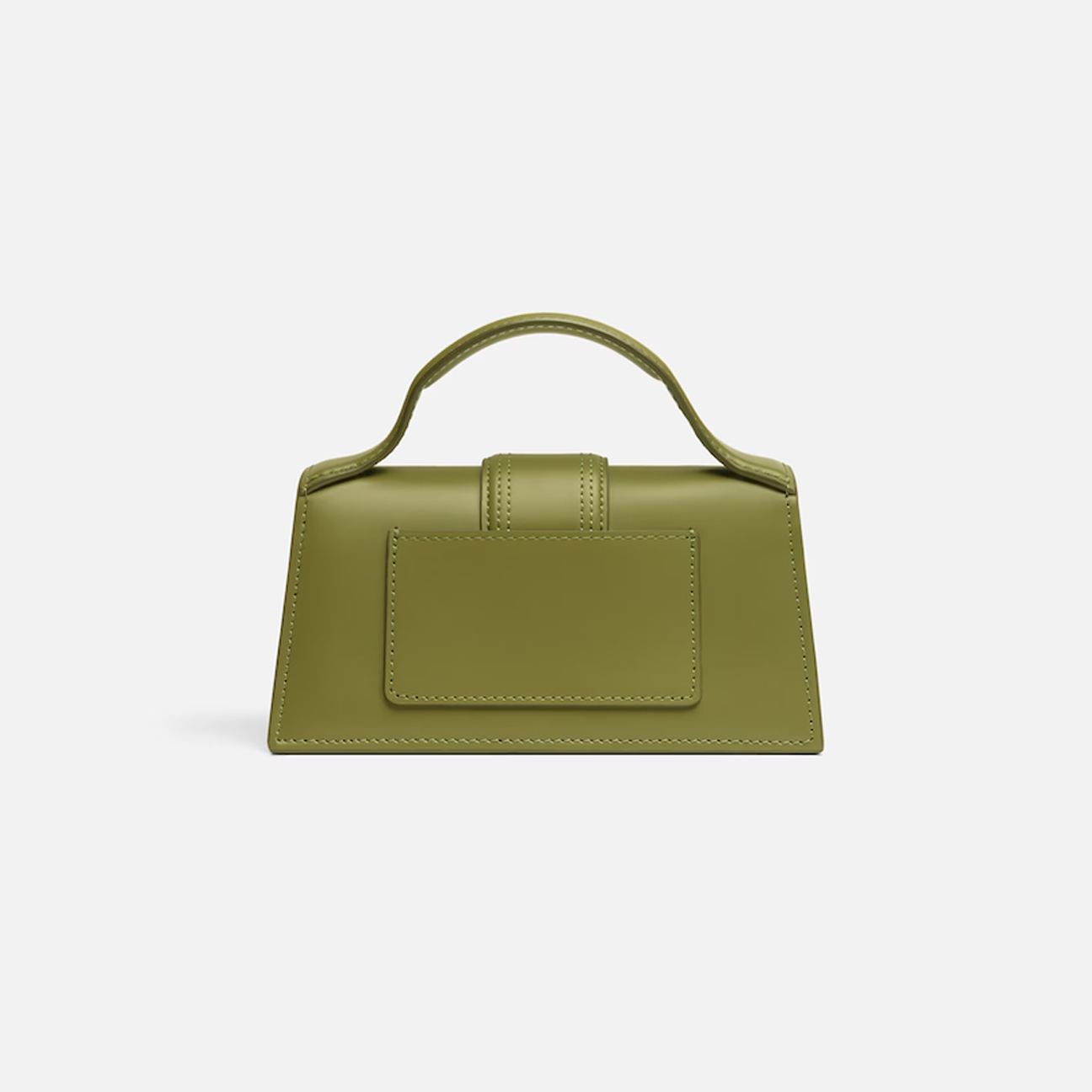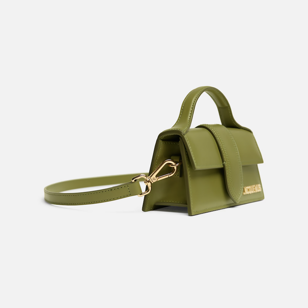 The Jacquemus Le Bambino ‘Khaki Green’ (style 213BA006-3135-330) is a modern, timeless bag that blends luxury minimalism with a deep, refined green tone. Crafted from smooth premium calf leather, it features a structured silhouette, magnetic flap closure and elegant top handle. The detachable and adjustable strap allows the bag to be worn crossbody, over the shoulder or hand-held. With compact dimensions of approximately 17 × 9 cm, it offers just enough room for everyday essentials while maintaining a sleek and feminine profile.