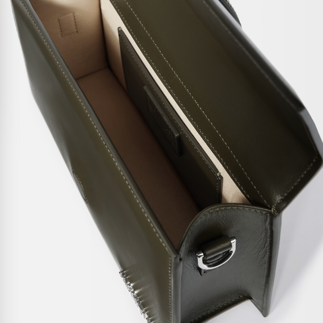 The Jacquemus Le Grand Bambino ‘Dark Khaki’ (style BAW00007AC01C02580) is a luxurious and contemporary handbag that merges refined craftsmanship with a strong, modern aesthetic. Made from premium calf leather in a deep dark-khaki shade, the bag offers an elegant yet grounded look. Its structured silhouette, magnetic flap closure and padded top handle create a clean, sophisticated presence. Measuring approximately 23.5 × 13 × 7 cm, it provides ample room for everyday essentials while maintaining a sleek profile.