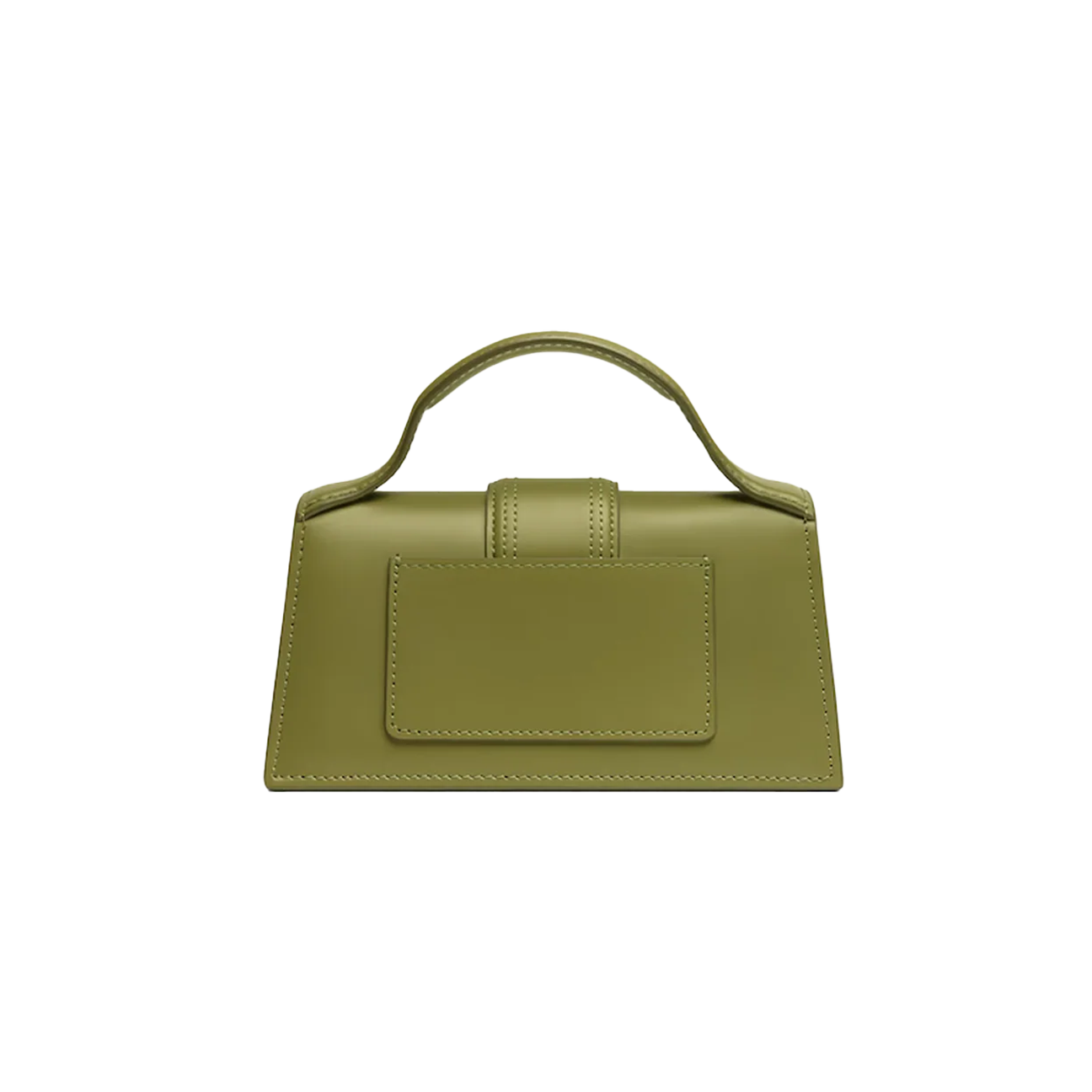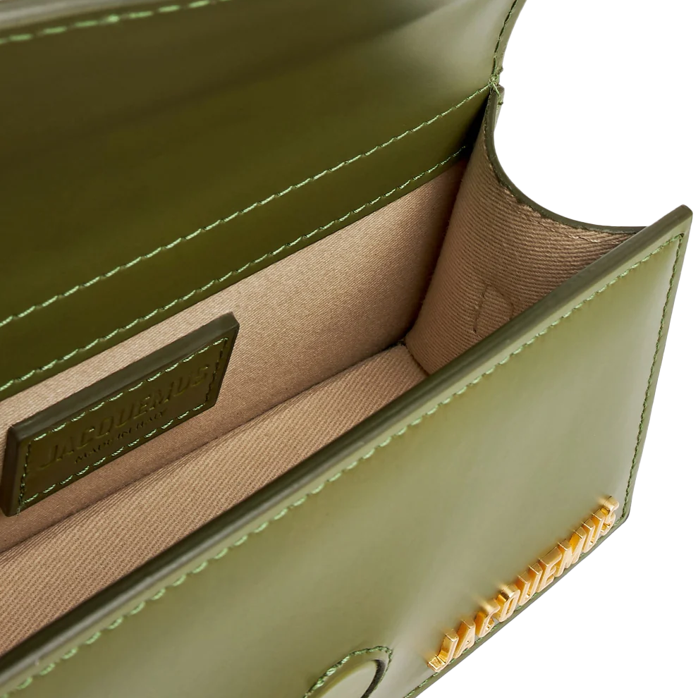 The Jacquemus Le Bambino ‘Khaki Green’ (style 213BA006-3135-330) is a modern, timeless bag that blends luxury minimalism with a deep, refined green tone. Crafted from smooth premium calf leather, it features a structured silhouette, magnetic flap closure and elegant top handle. The detachable and adjustable strap allows the bag to be worn crossbody, over the shoulder or hand-held. With compact dimensions of approximately 17 × 9 cm, it offers just enough room for everyday essentials while maintaining a sleek and feminine profile.