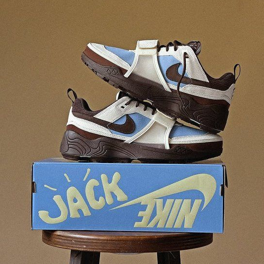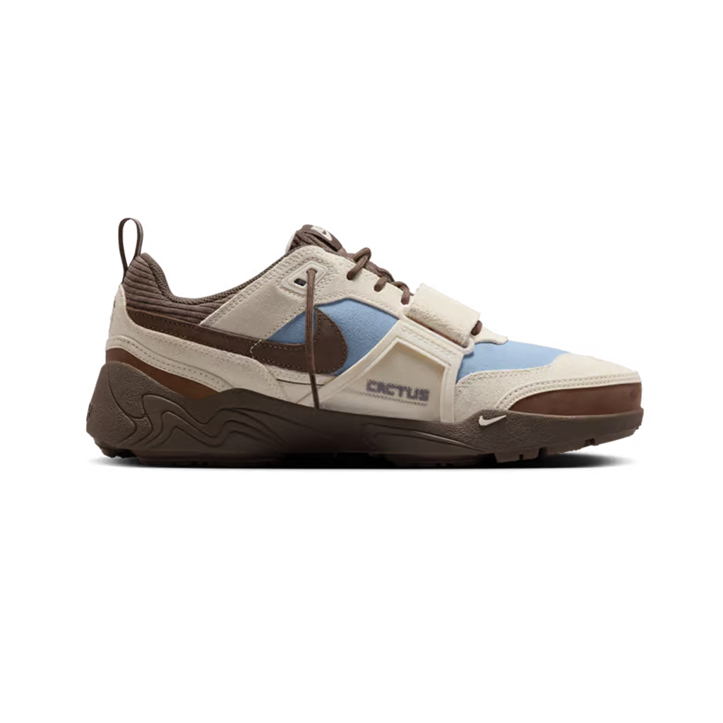 The Nike Zoom Field Jaxx Travis Scott Leche Blue (style HQ3072-400) is a forward thinking sneaker that blends performance engineering with Travis Scott’s signature design language. The upper combines mesh, textile and structured synthetic panels in a soft leche blue color palette, enriched with contrasting details. The sculpted sole features responsive Zoom cushioning while the asymmetrical lace system and Cactus Jack touches give the silhouette its distinctive identity.