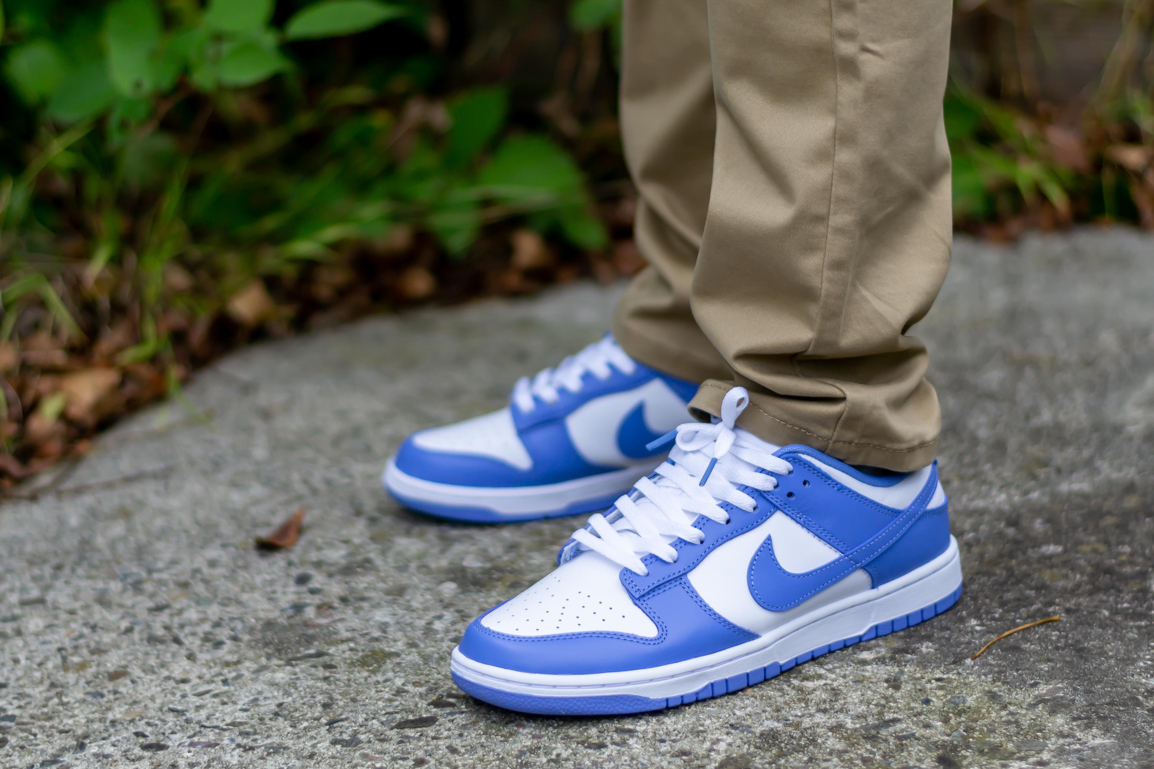 The Nike Dunk Low Polar Blue features a fresh and vibrant interpretation of the classic Dunk Low, finished in a crisp combination of white leather and polar blue accents. The upper is constructed from smooth leather panels that stay true to the original Dunk design language, defined by its clean lines, low cut profile and iconic Swoosh placement. The bold blue detailing adds contrast and character, while the padded collar and cushioned sole ensure everyday comfort. This colourway offers a balanced look that feels both sporty and easy to style.