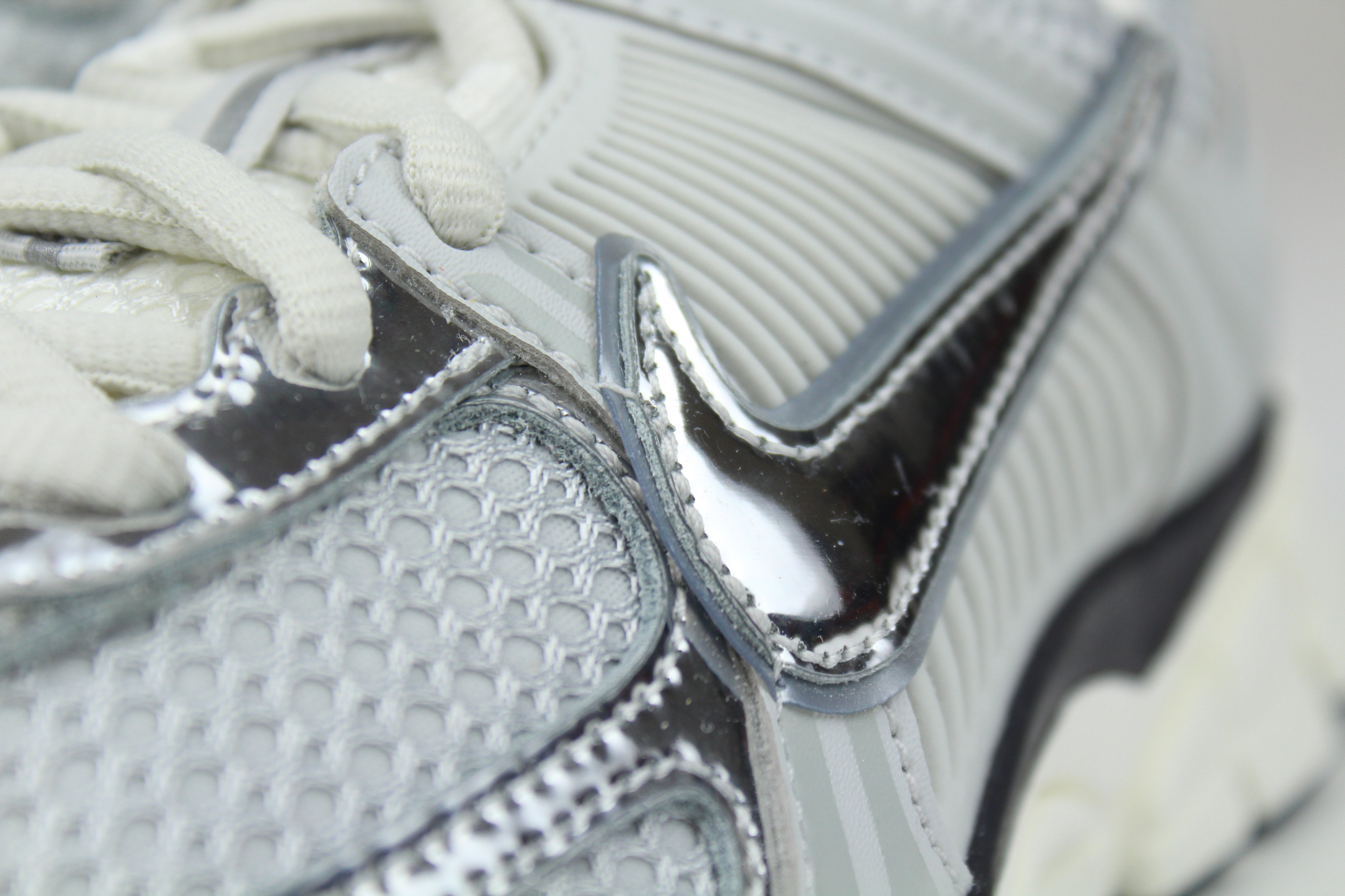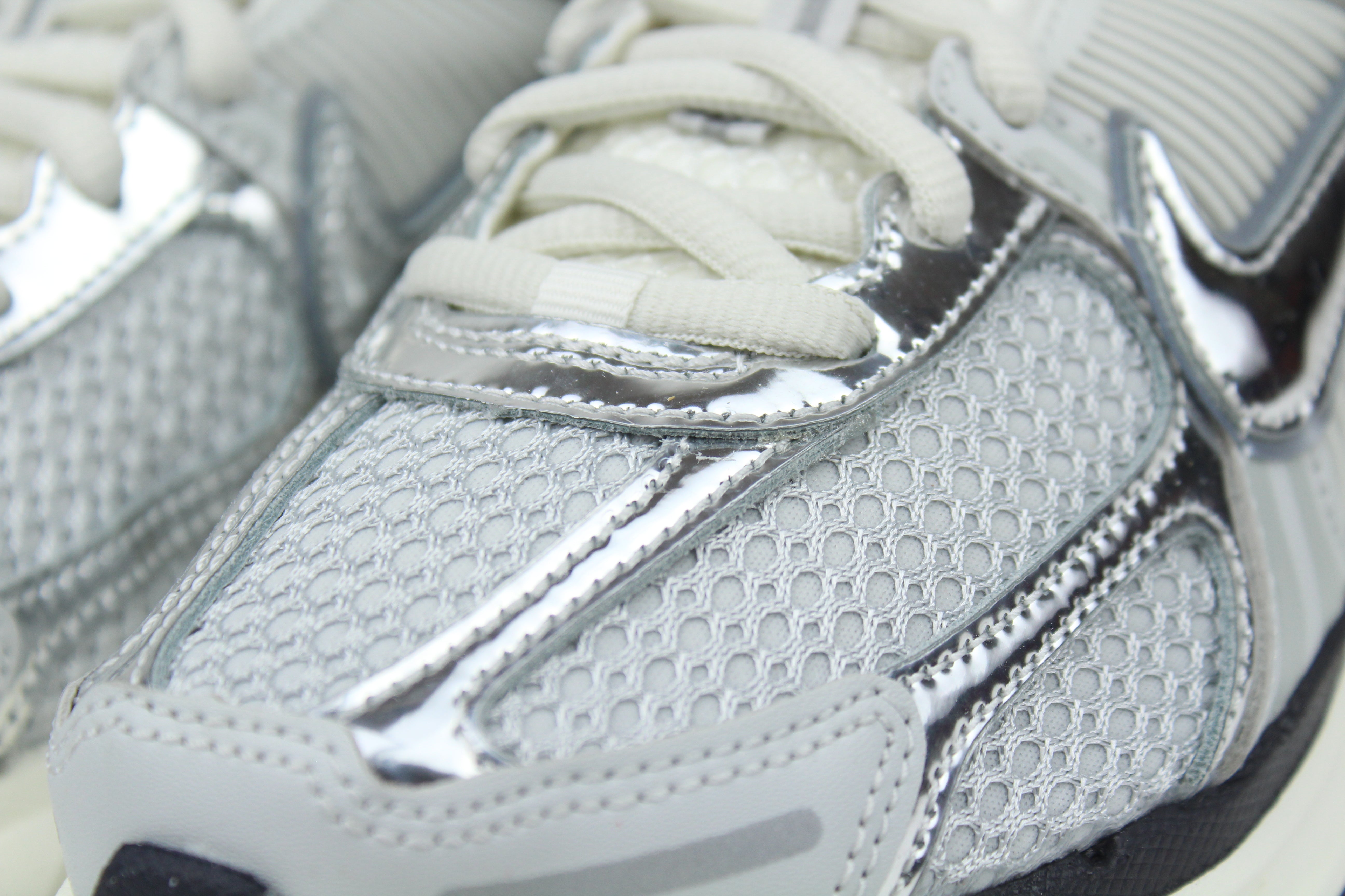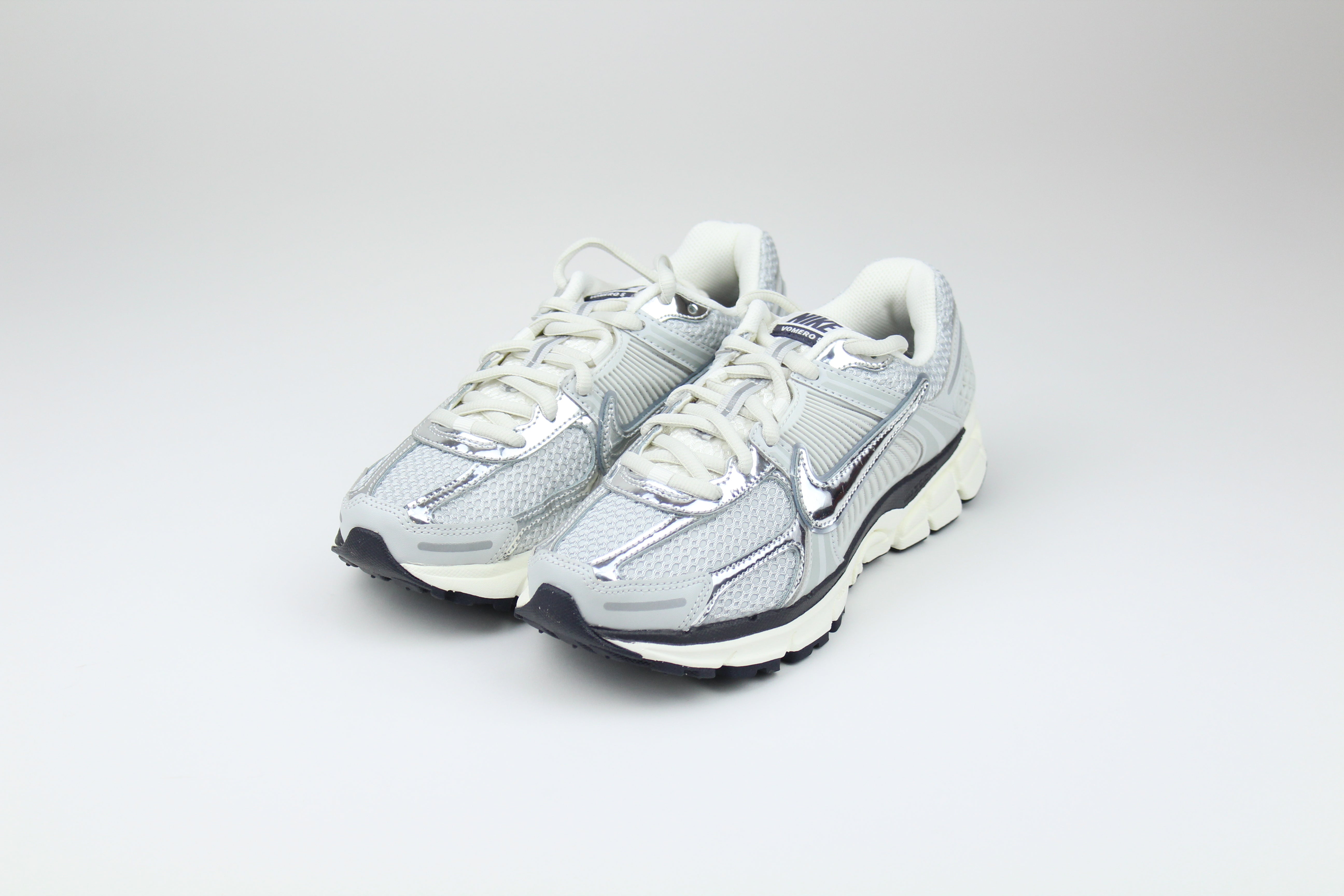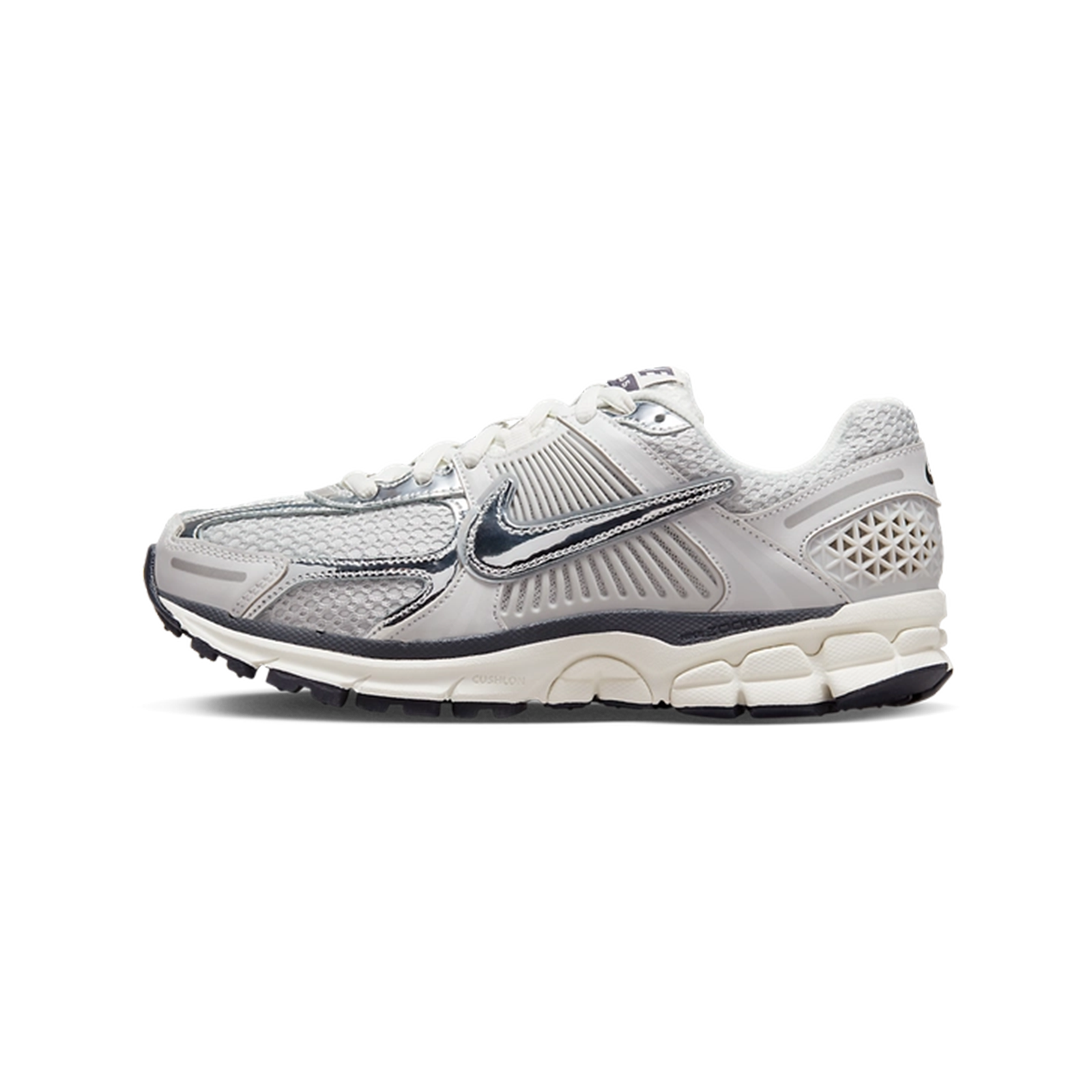 The Nike Zoom Vomero 5 Photon Dust Metallic Silver for women blends the refined hues of Photon Dust with striking Vomero 5 Metallic Silver accents. Its breathable mesh upper, combined with synthetic leather, ensures a light and airy feel.