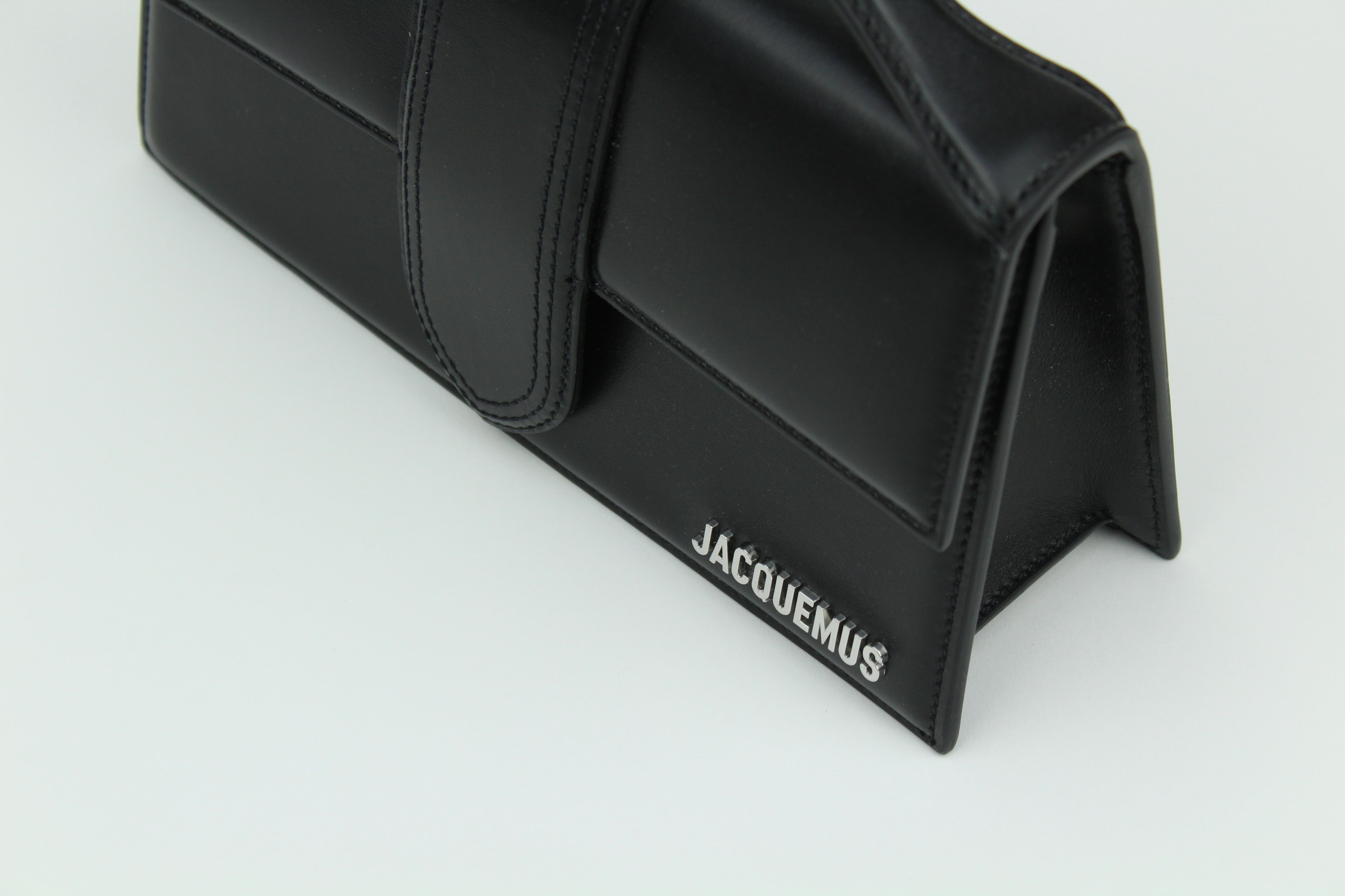Die Jacquemus Le Grand Bambino ‘Black Silver’ (Stil 213BA007-3000-99S) ist eine moderne, luxuriöse Handtasche, die minimalistische Eleganz mit einem auffälligen metallischen Akzent verbindet. Gefertigt aus hochwertigem schwarzem Kalbsleder mit einem dezenten Glanz und veredelt mit silberfarbener Hardware, präsentiert sie ein strukturiertes und zeitgemäßes Silhouette. Der magnetische Überschlag, der gepolsterte Top-Handle und die skulpturale Form verleihen diesem Modell seine charakteristische, hochwertige Ausstrahlung. Mit den Maßen von etwa 23,5 × 13 × 7 cm bietet die Tasche ausreichend Platz für tägliche Essentials, während sie stets elegant bleibt.