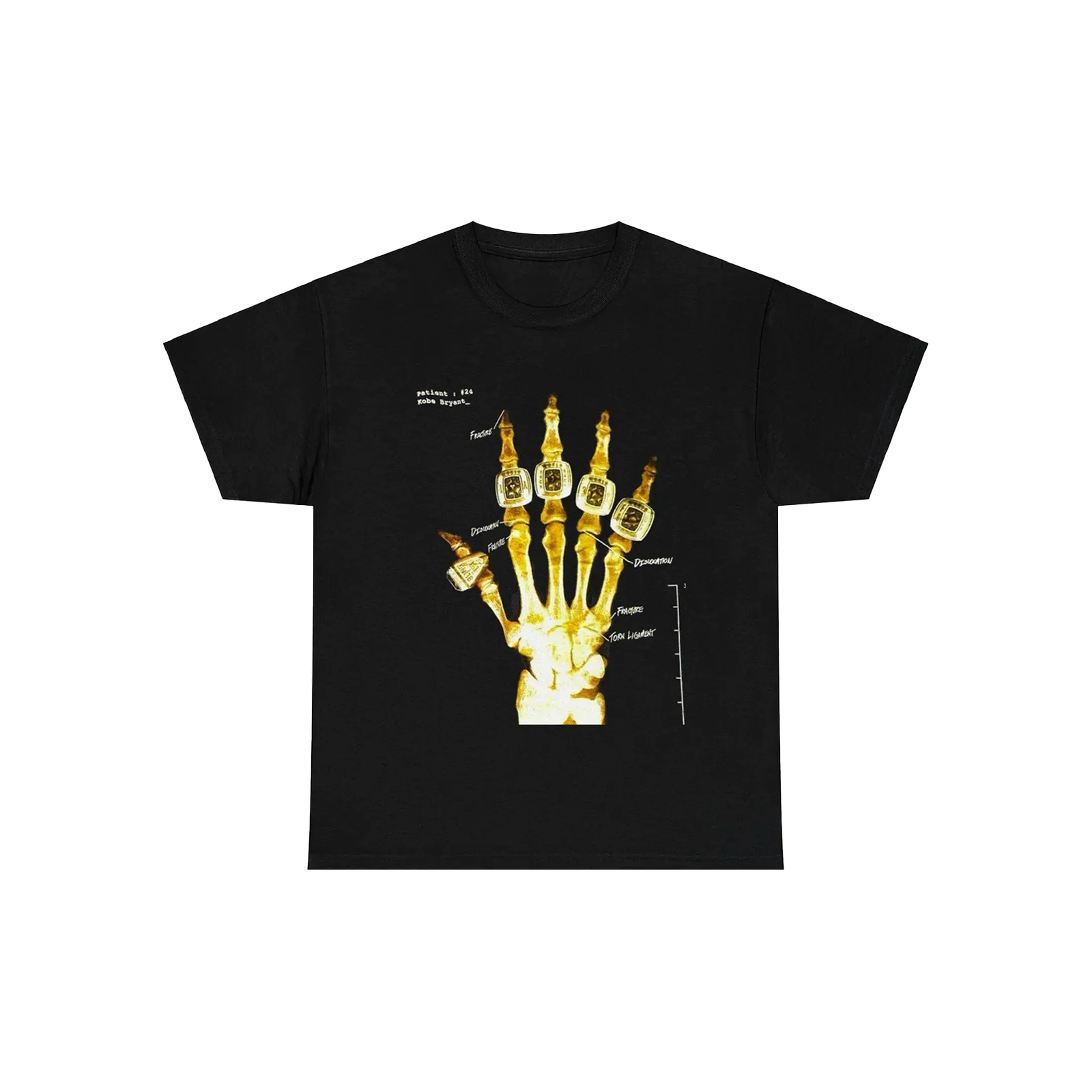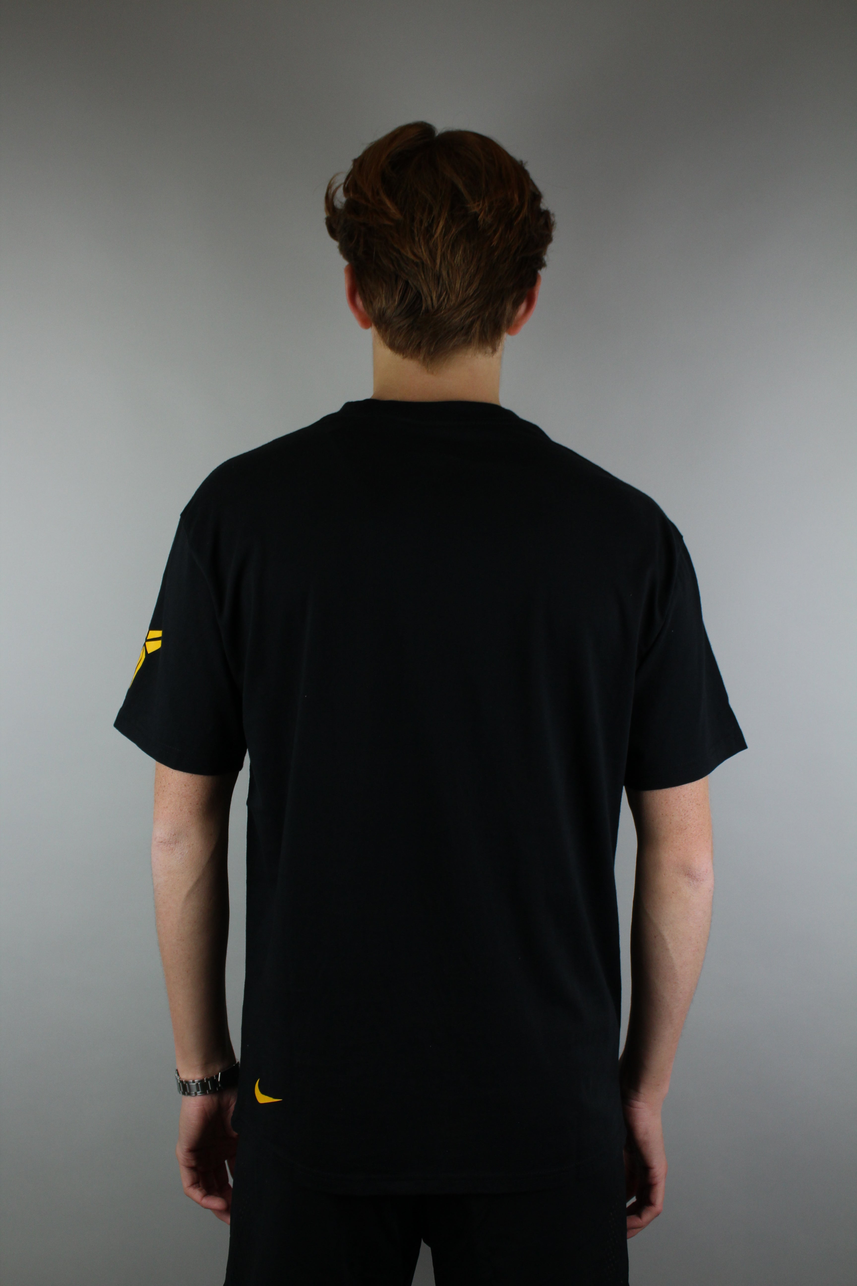 Das Shirt auf kräftigem Schwarz zeigt eine fesselnde Röntgengrafik von Kobes Silhouette und unterstreicht so seine ikonische Athletik und Präsenz auf dem Platz. Dieses auffällige Design ist nicht nur eine Hommage an seine bemerkenswerte Karriere, sondern fängt auch die Essenz der Ausdauer und Leidenschaft ein, die er sein ganzes Leben lang verkörperte.