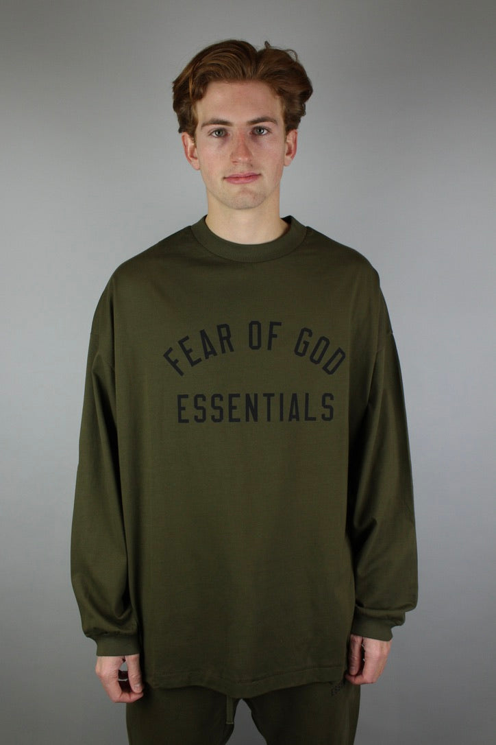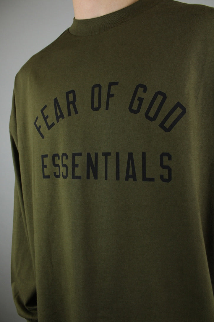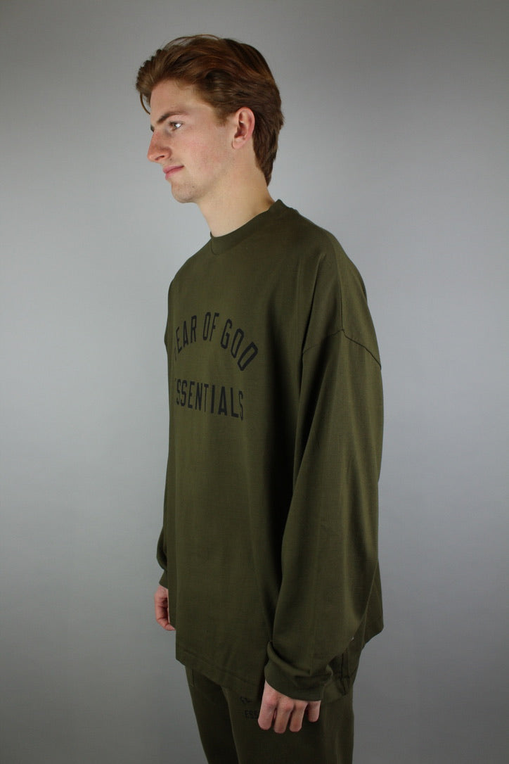 Fear of God Essentials Jersey-Langarm-T-Shirt „Oliv“