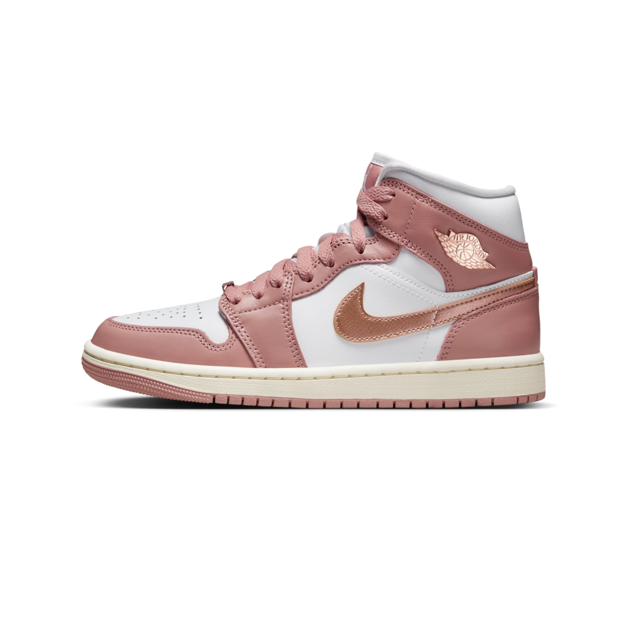 Strahlen Sie für einen Moment im AJ1 Mid. Das glänzende Swoosh-Emblem und die limitierten Schnürsenkel-Labels verleihen diesen Schuhen einen glamourösen Touch. Mit einem Hauch von Gold erhält das klassische Wings-Emblem, das den Mid-Top-Kragen ziert, ein metallisches Makeover und wertet das gesamte Sneaker-Design auf.