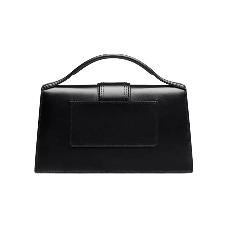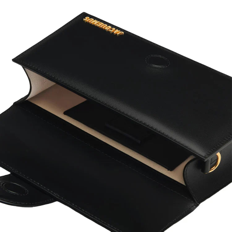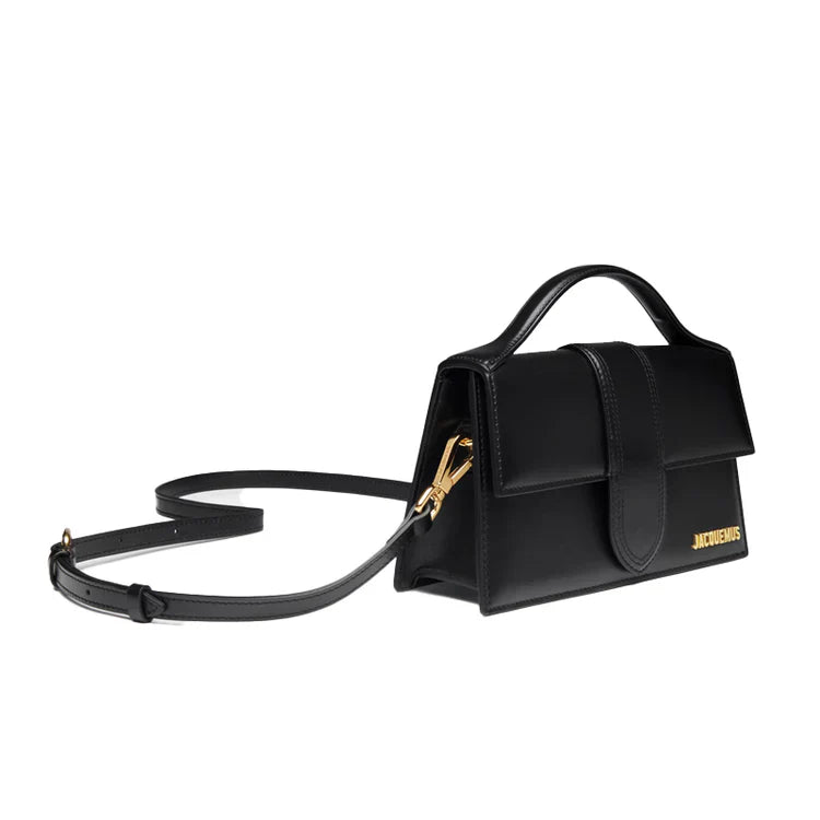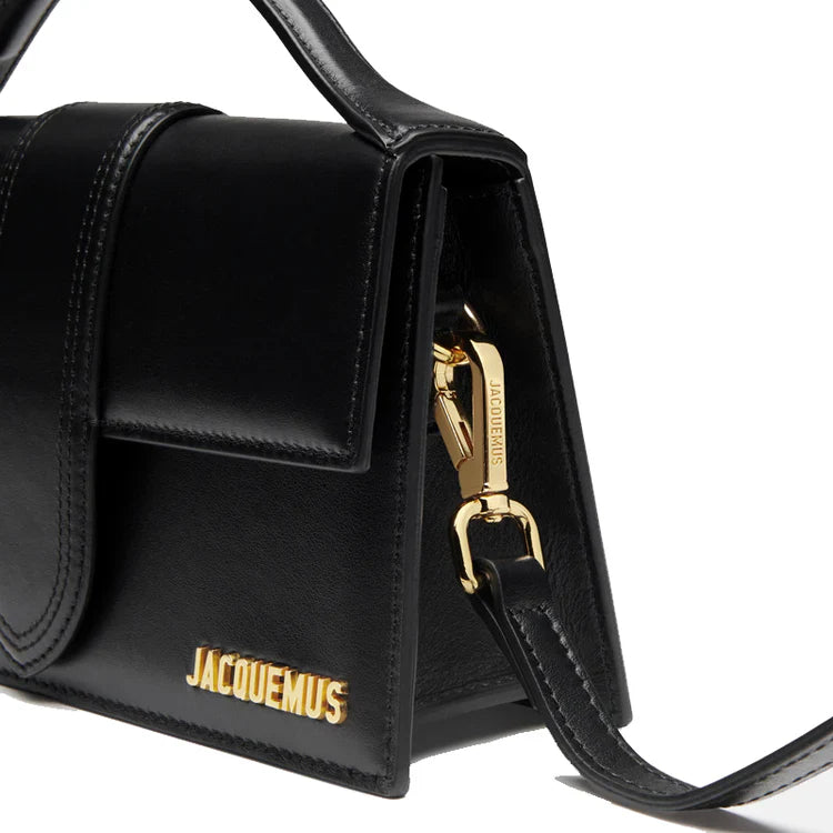 Die Jacquemus Le Grand Bambino ‘Black Gold’ (Stil 213BA007-3000-990) ist eine luxuriöse und zeitlose Handtasche, die moderne Raffinesse mit einer strukturierten, skulpturalen Silhouette verbindet. Gefertigt aus hochwertigem schwarzem Kalbsleder und veredelt mit glänzenden goldfarbenen Details, verleiht sie jedem Look eine elegante High-End-Note. Der magnetische Überschlagverschluss, der gepolsterte Top-Handle und die markante Form unterstreichen die edle Ausstrahlung. Mit einer Größe von etwa 23,5 × 13 × 7 cm bietet die Tasche ausreichend Platz für alltägliche Essentials und bleibt dabei stets elegant und formschön.