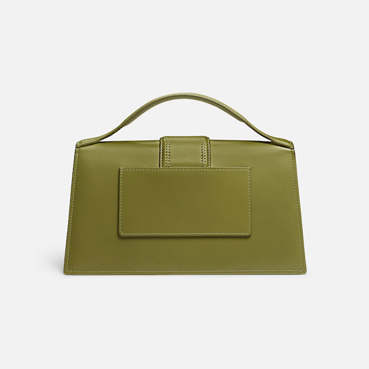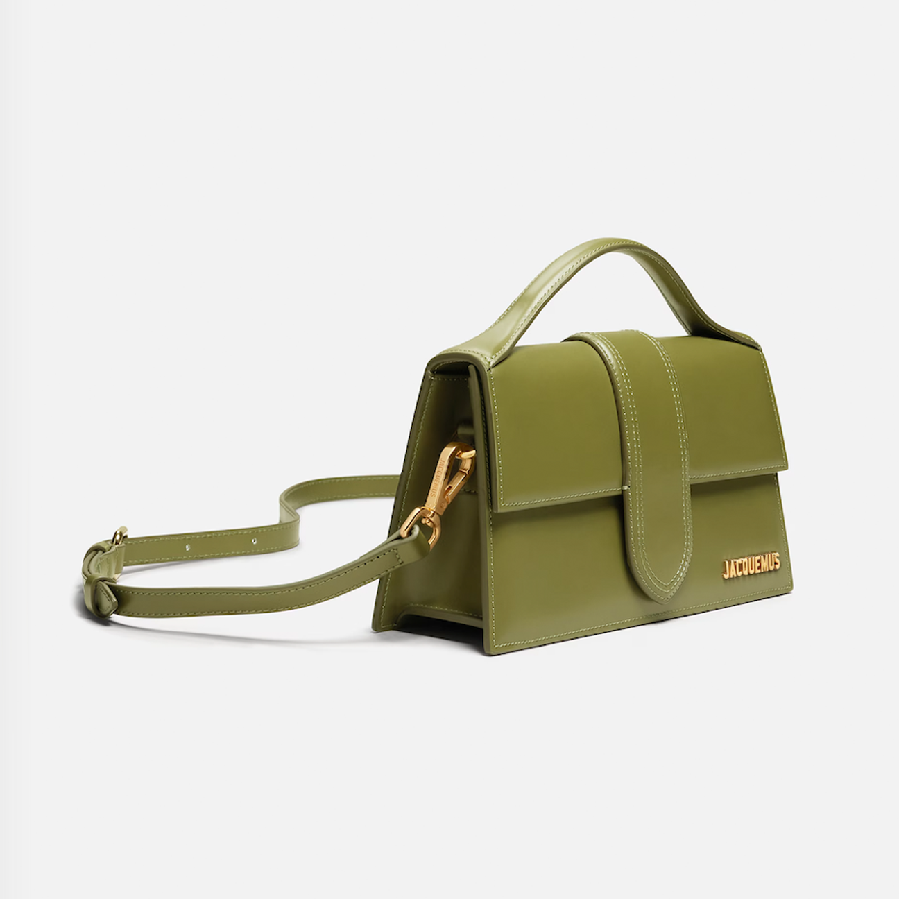 Die Jacquemus Le Grand Bambino ‘Khaki’ (Stil 213BA007-3100-560) ist eine luxuriöse und zeitlose Handtasche, die moderne Eleganz mit einem weichen, raffinierten Khaki-Ton verbindet. Gefertigt aus hochwertigem Kalbsleder mit dezenter Struktur, wirkt das Design sowohl edel als auch minimalistisch. Der magnetische Überschlagverschluss, die skulpturale Form und der gepolsterte Top-Handle verleihen der Tasche eine markante High-End-Ausstrahlung. Mit Maßen von ca. 23,5 × 13 × 7 cm bietet sie ausreichend Platz für tägliche Essentials und bleibt dennoch schlank und elegant.