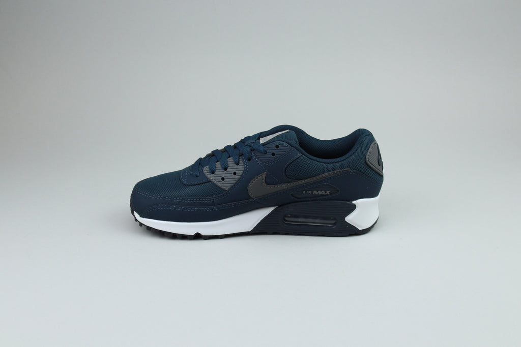Der „Armory Navy“ besticht durch einen hochwertigen Materialmix aus atmungsaktivem Mesh und strapazierfähigem Leder und sorgt so für Komfort und Halt. Der tiefe Marineton wird durch weiße und graue Akzente ergänzt und sorgt für einen eleganten und modernen Look, der die ikonische Silhouette des Air Max 90 unterstreicht.