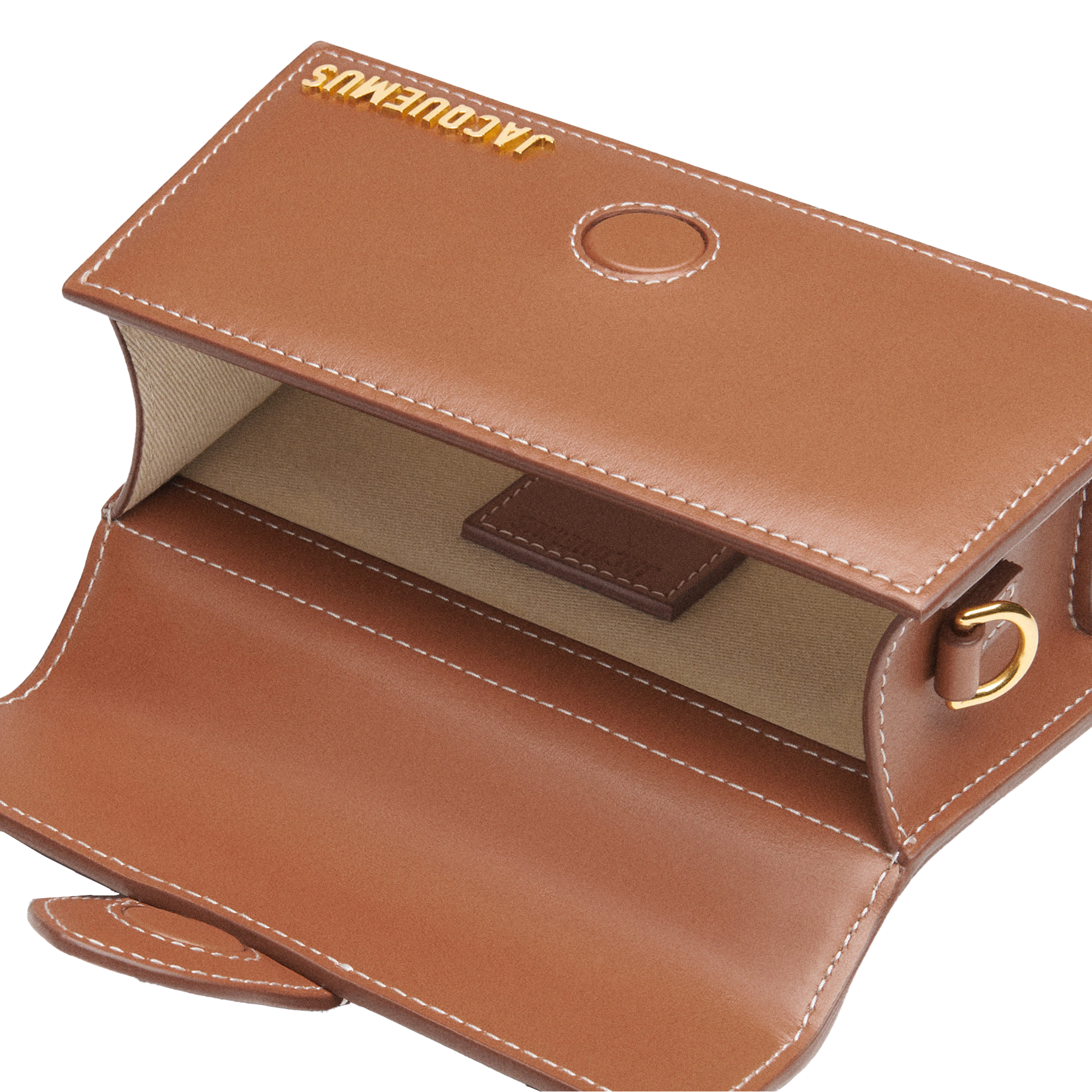 Die Jacquemus Le Bambino ‘Light Brown’ (style BAW00006AC01C04811) ist eine elegante, moderne Handtasche, die luxuriöse Schlichtheit mit einer warmen, zeitlosen Farbpalette verbindet. Gefertigt aus glattem Premium-Kalbsleder in einem sanften Hellbraun, wirkt die Silhouette zugleich raffiniert und vielseitig. Der magnetische Überschlag, die klaren Linien und der ikonische Top-Handle verleihen der Tasche eine minimalistische, aber markante Ausstrahlung. Mit einer Größe von etwa 17 × 9 cm bietet sie ausreichend Platz für tägliche Essentials und bleibt dennoch schlank und elegant.