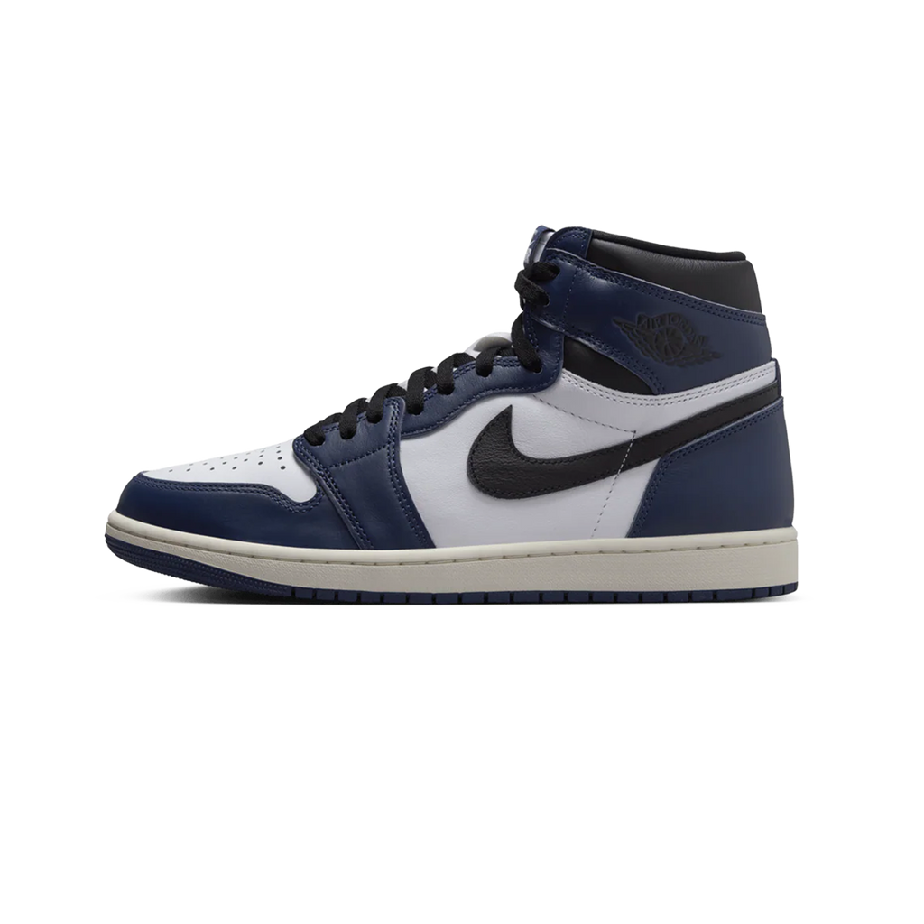 Der „Midnight Navy“ besticht durch sein hochwertiges Obermaterial aus Leder, das für Langlebigkeit und einen luxuriösen Look sorgt. Die satten Marinetöne werden mit strahlend weißen Akzenten kombiniert, darunter der ikonische Swoosh und die Zwischensohle. So entsteht eine klare und vielseitige Ästhetik, die auffällt.