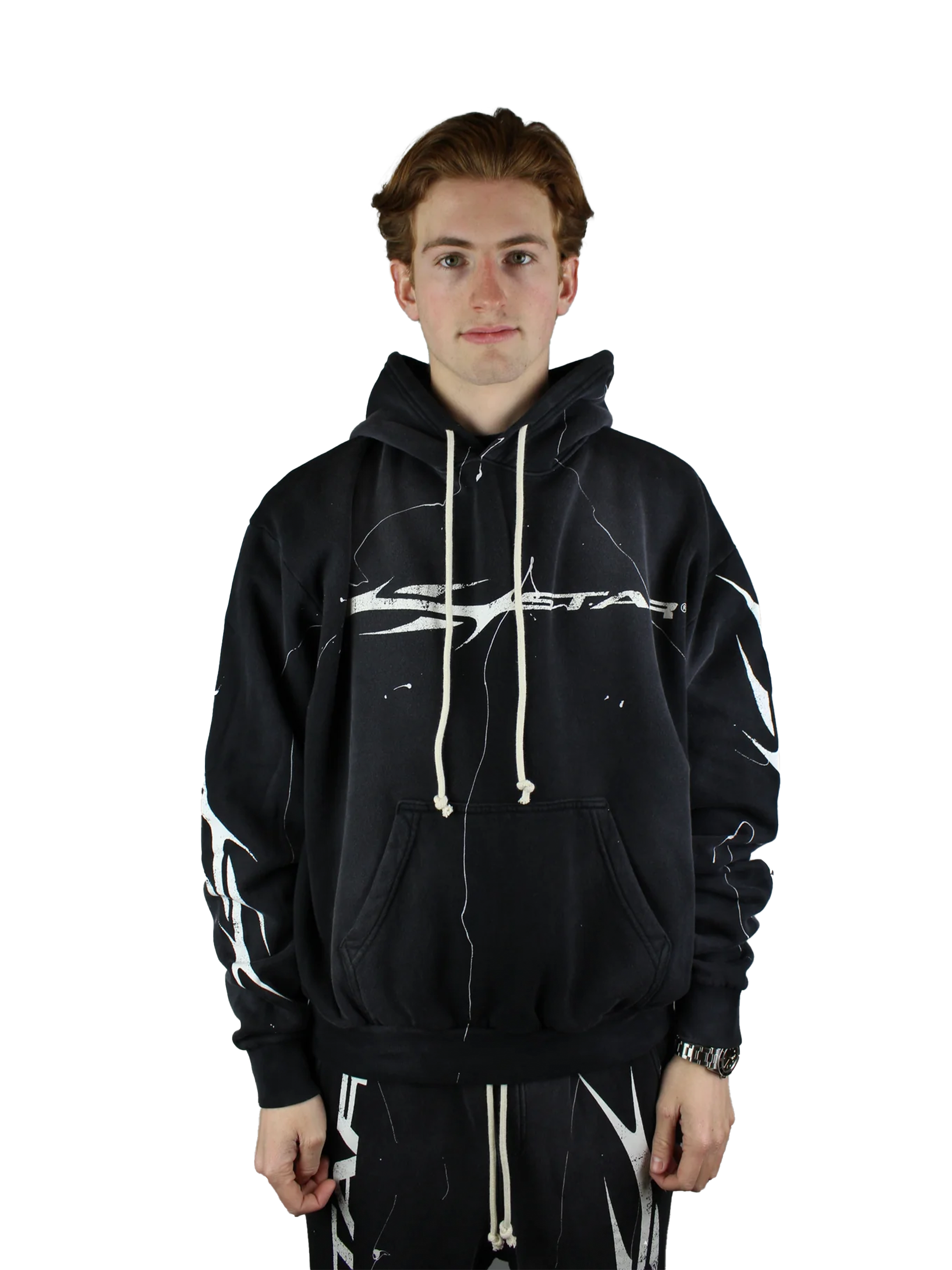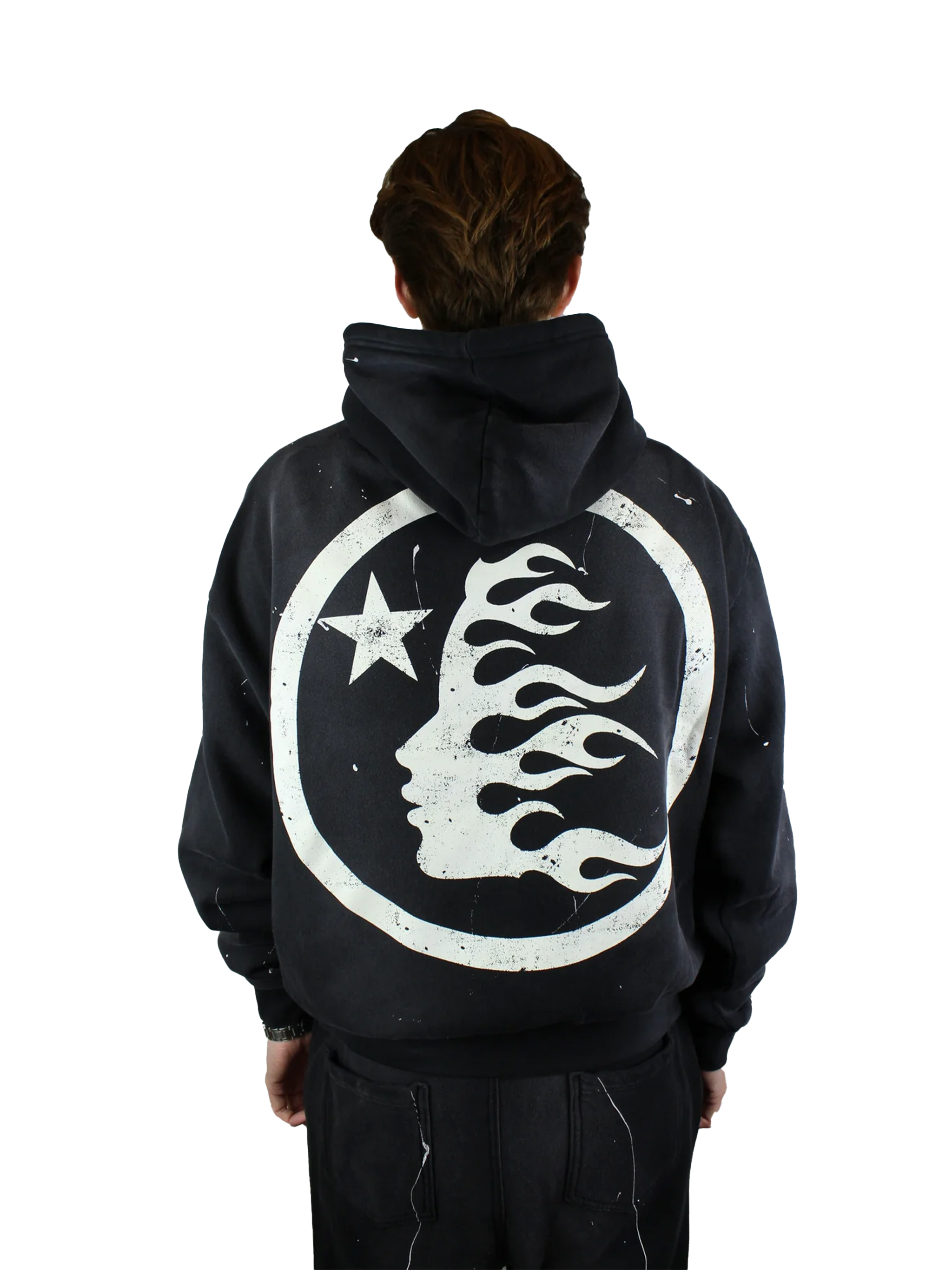 Ignite your wardrobe with the Hellstar Flame Hoodie in a striking black color, designed for those who want to make a bold statement while staying cozy and stylish. This hoodie is the perfect blend of comfort and eye-catching design, making it a versatile addition to your collection for any casual occasion.