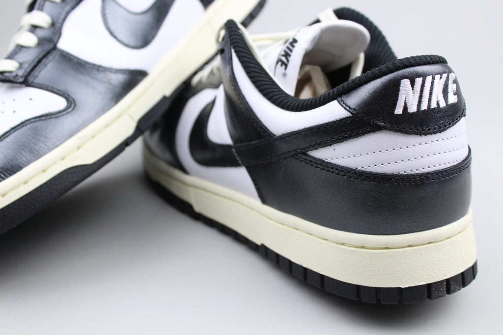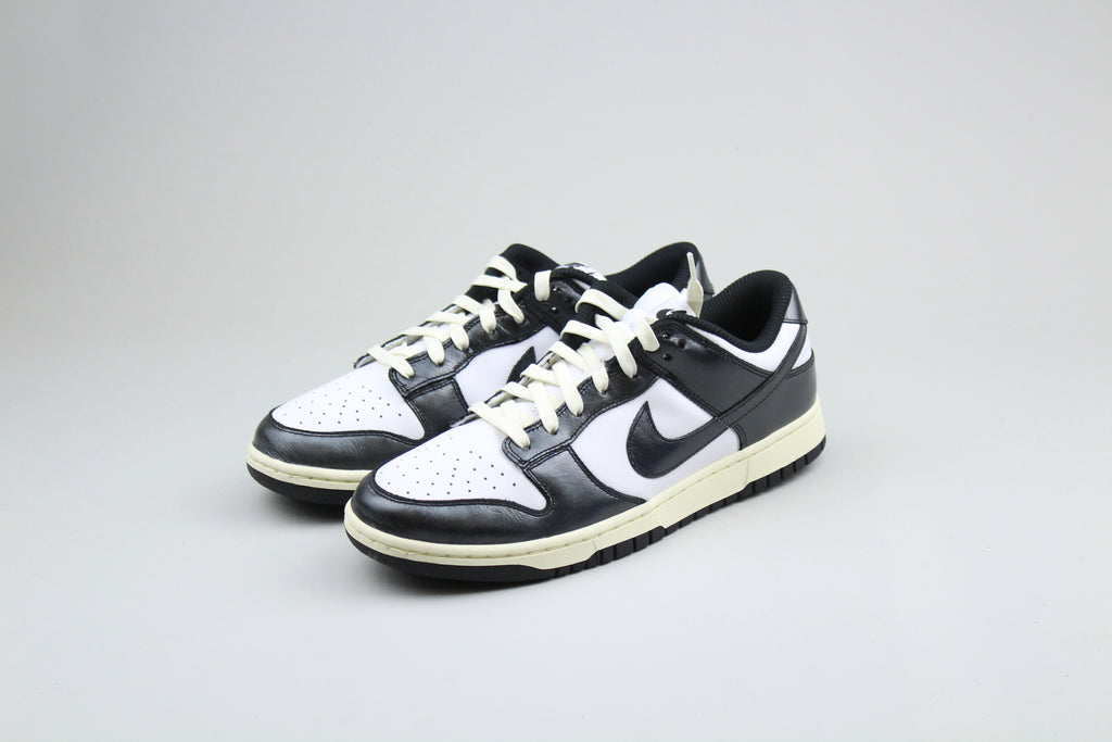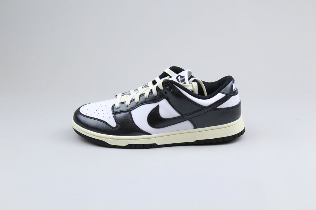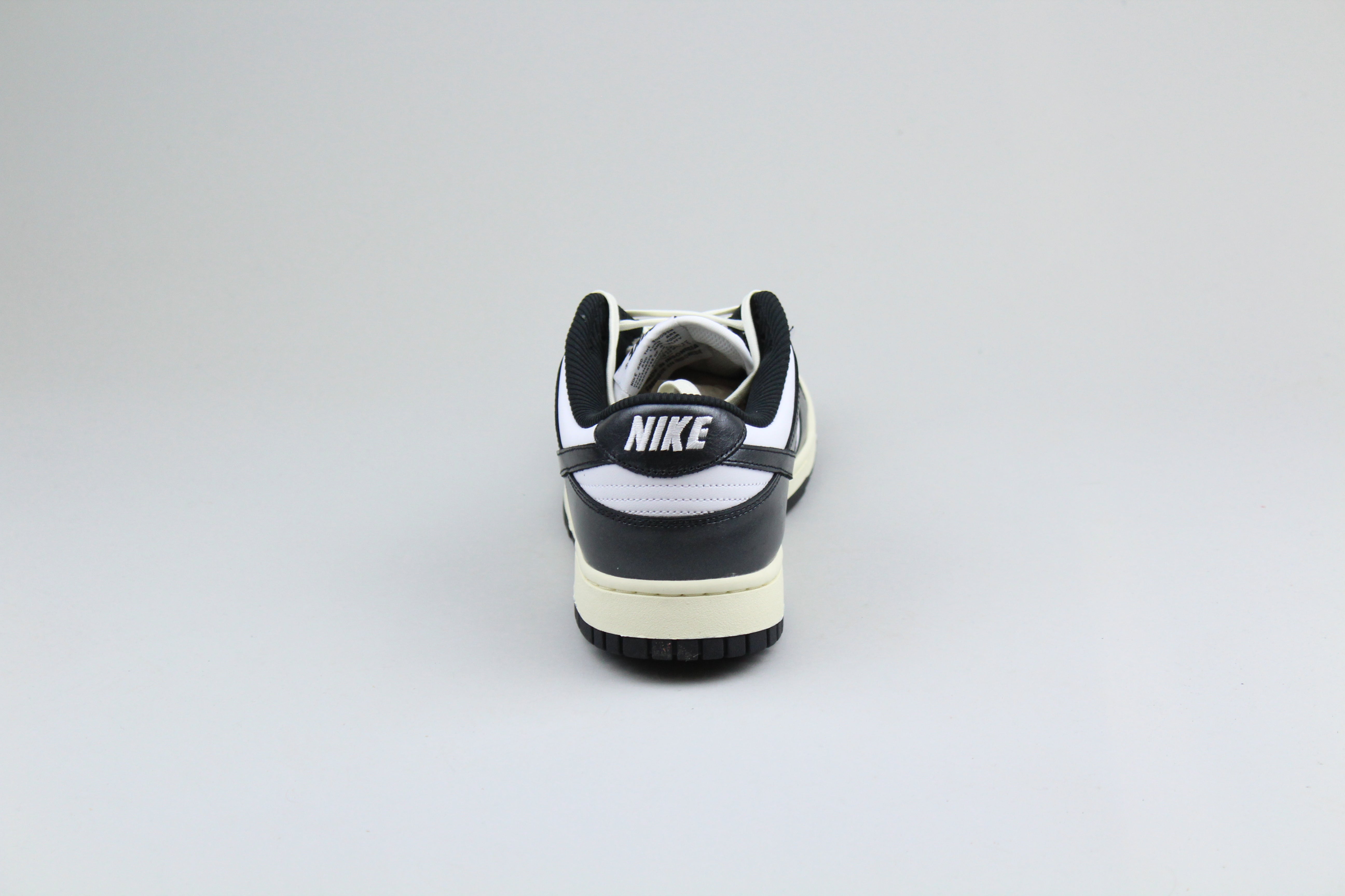 The classic two-tone "Panda" hue is applied to a vintage-inspired Dunk in the Nike Dunk Low Vintage Panda (Women's). A new shade of off-white called Coconut is added to the classic Black and White Panda combination.