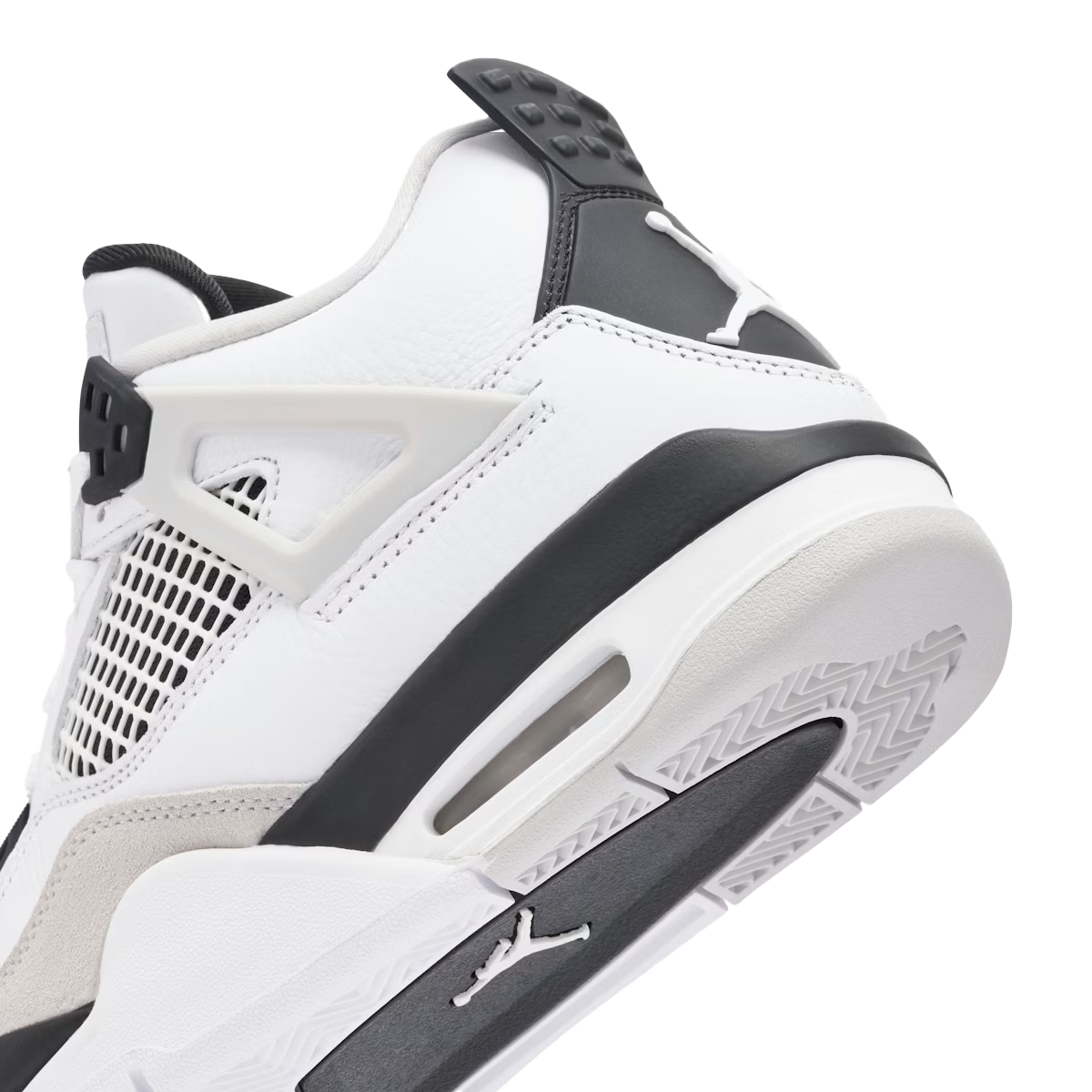 Jordan 4 Retro ‘Military Black’ (style DH6927-111) stands as one of the most in demand Jordan 4 releases, offering a clean and modern twist on a classic colourway. The sneaker takes inspiration from the original ‘Military Blue’ but swaps the blue accents for black, resulting in a sleek, neutral design. The upper is constructed from white leather with light grey suede overlays and contrasting black hits on the wings, midsole, heel tab and branding.