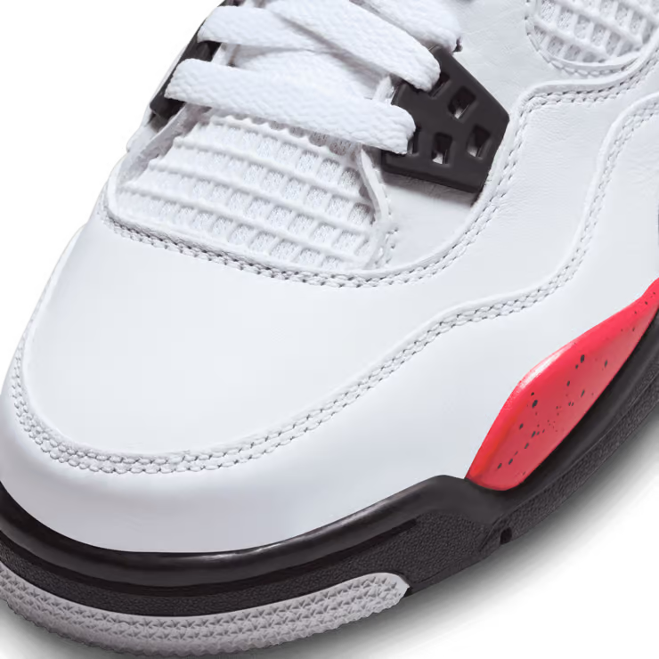 All signature Jordan 4 elements remain present, including the mesh panels, TPU wings and visible Air cushioning in the heel. The sturdy build and soft underfoot comfort make this pair ideal for everyday wear. The ‘Red Cement’ stands out for its contrast rich palette, strong visual identity and versatility within streetwear and clean casual outfits.