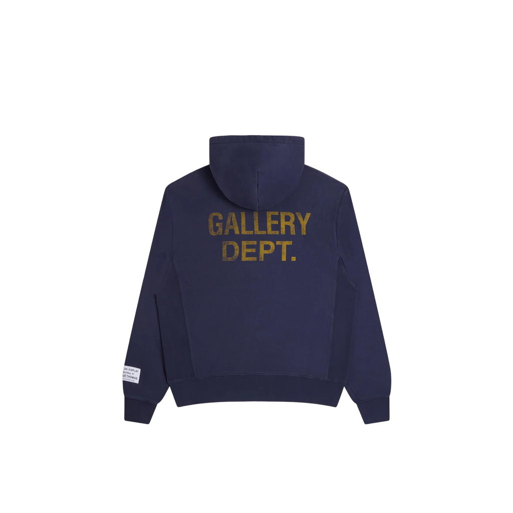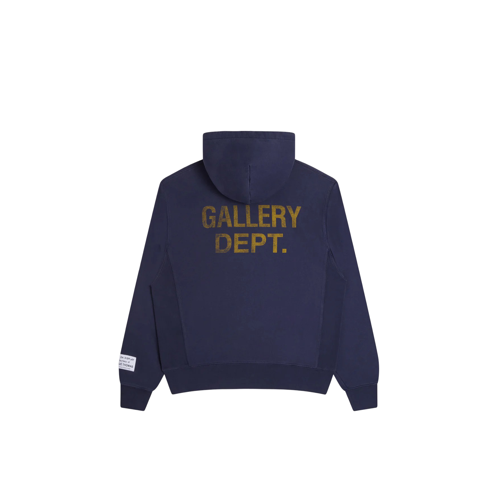 The Gallery Dept. Paint Logo Hoodie “Vintage Navy” is a standout piece that marries premium streetwear with in-studio craftsmanship and vintage sensibilities.