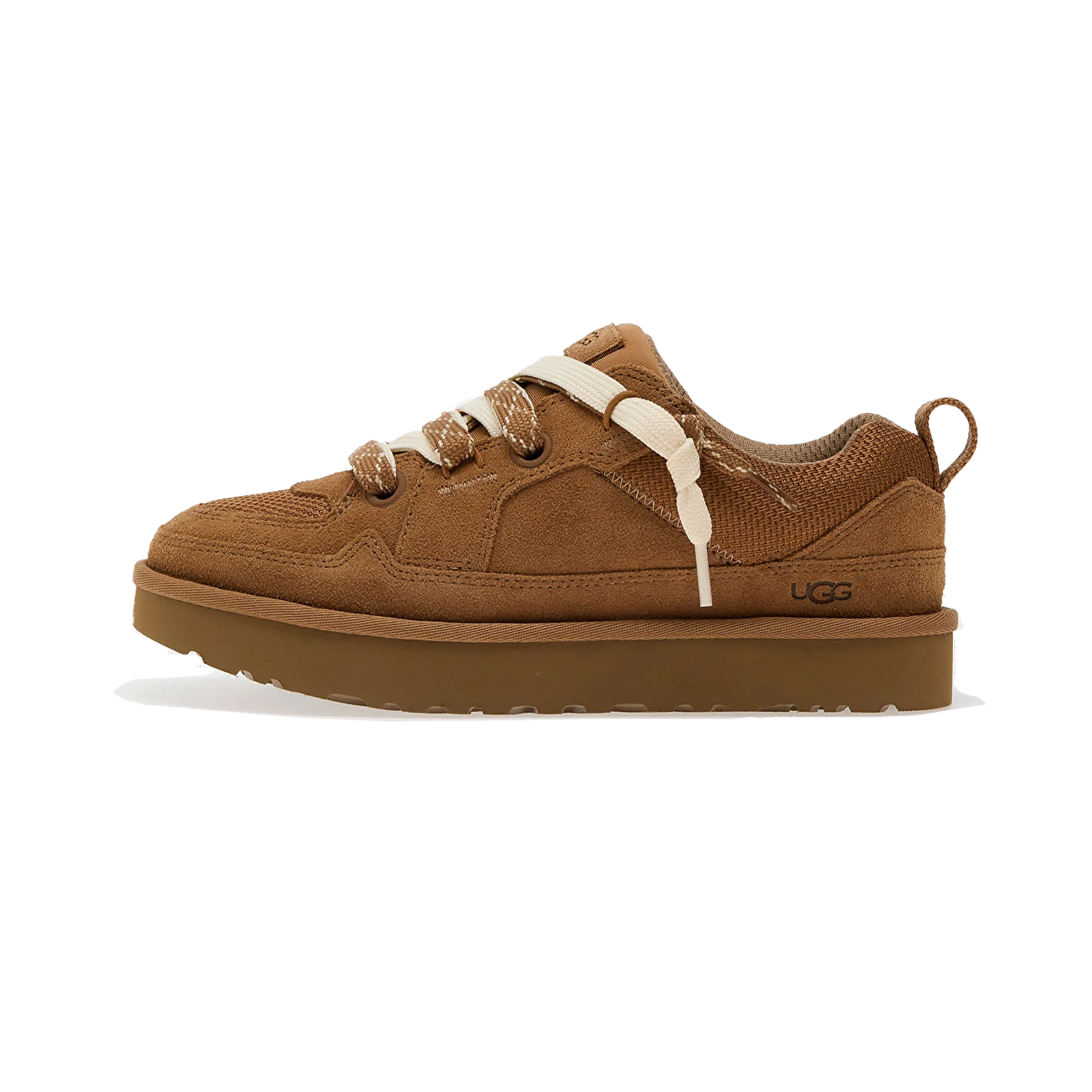 The UGG Lowmel Lo ‘Chestnut’ (style 1168890-CHE) combines modern sneaker styling with the signature comfort and warmth of UGG. Crafted from premium suede with lightweight recycled textile accents and lined with plush UGGplush™, this low-top design offers day-long comfort and a versatile aesthetic. The rich Chestnut colorway provides a natural and timeless look that pairs effortlessly with streetwear, casual outfits and relaxed getaway styles. The Lowmel Lo features a cushioned midsole and a durable SugarSole™ outsole, offering performance, comfort and contemporary appeal in one refined silhouette.