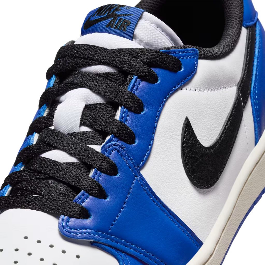 Air Jordan 1 Low OG ‘Game Royal’ (style CZ0790-140) delivers a clean, classic interpretation of the AJ1 Low inspired by its original 1980s shape. The sneaker features a white leather base paired with Game Royal overlays and black accents, creating a sharp, timeless colour contrast. Premium materials, an OG silhouette and traditional Nike Air branding anchor this pair firmly within Jordan heritage.