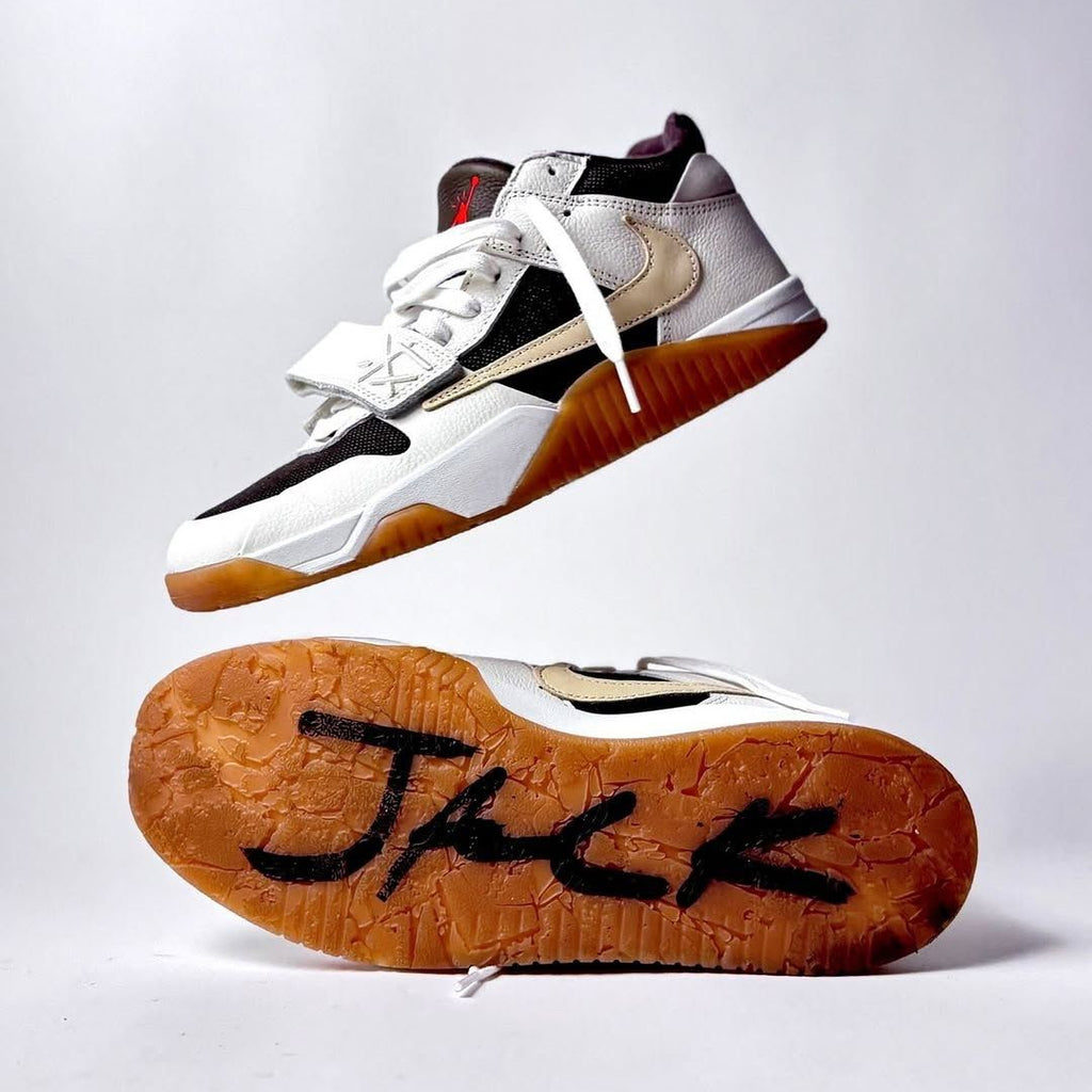 The Jordan Jumpman Jack TR Travis Scott Sail (style FZ8117-100) blends Travis Scott’s creative identity with Jordan’s athletic heritage. The upper features a mix of canvas and soft leather in a clean sail tone, accented with bold black details that enhance the sculpted silhouette. Signature touches such as the Cactus Jack branding and the Jack marking on the outsole highlight the exclusivity of the pair. With its solid midsole and rubber outsole, the sneaker offers reliable traction, stability and comfortable everyday wear.