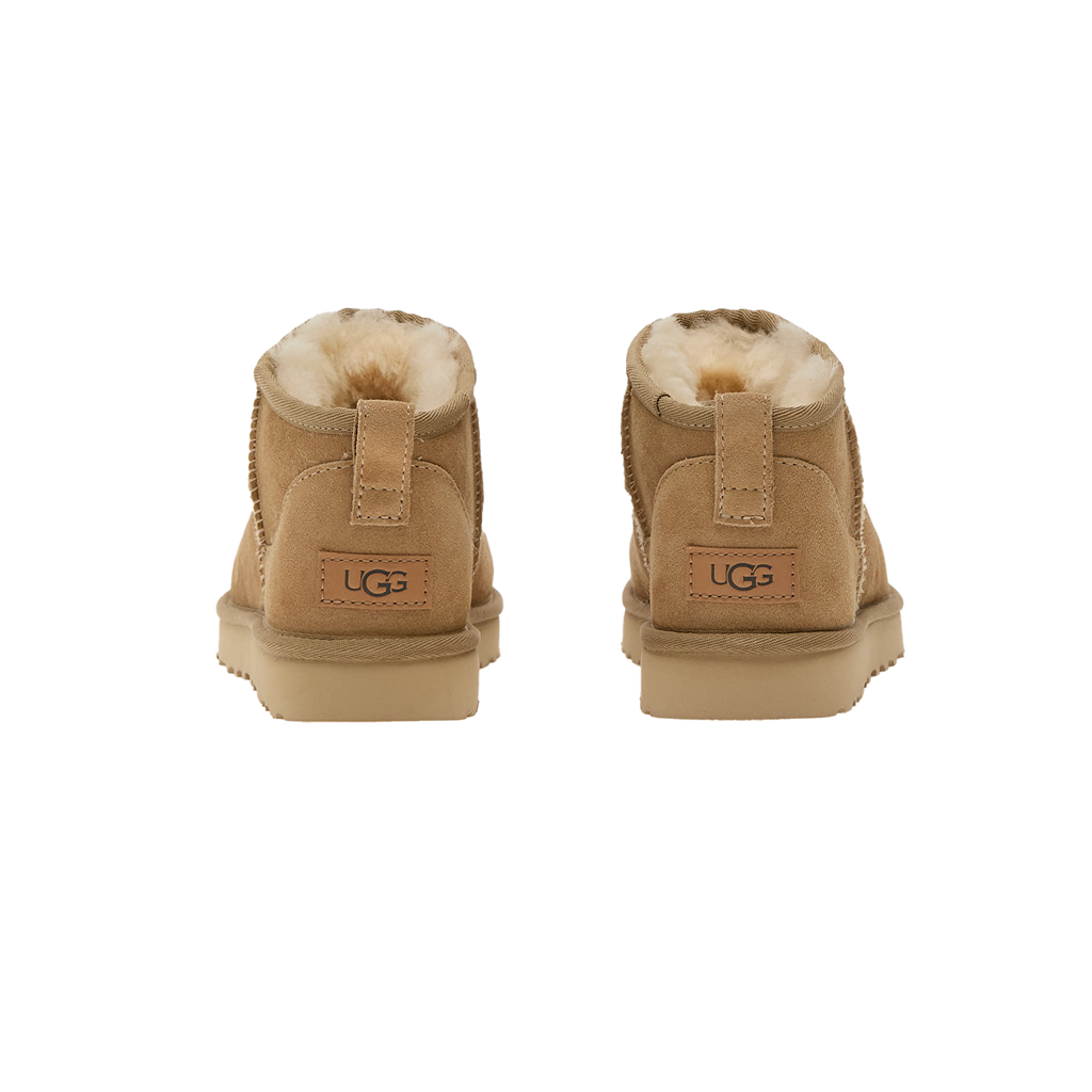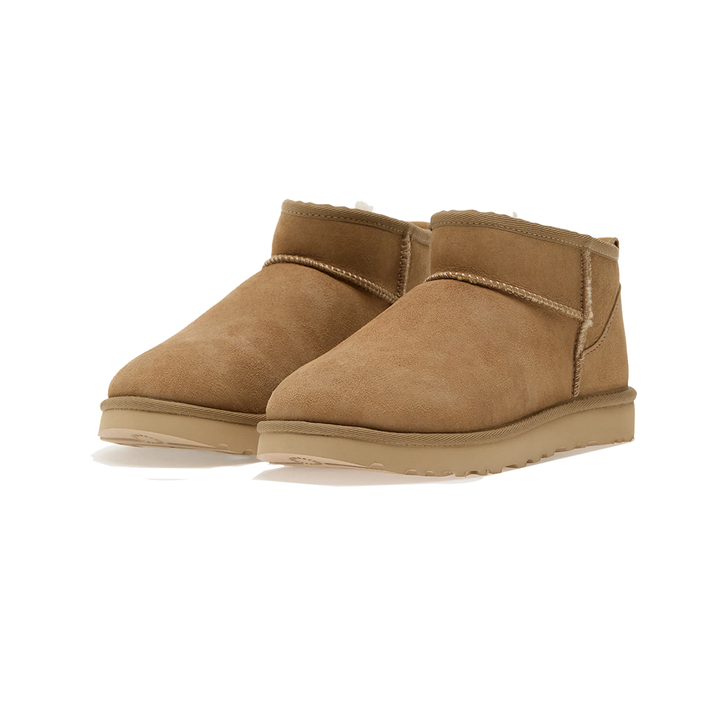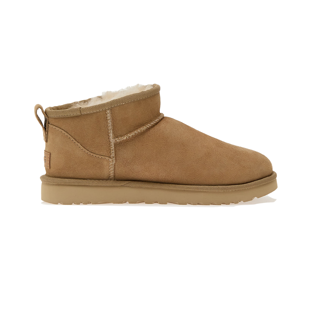 The UGG Classic Ultra Mini Boot ‘Sand’ (style 1116109-SAN) brings the iconic UGG comfort to a sleek, ankle-height silhouette designed for everyday versatility. Crafted from premium Sand-colored suede and lined with plush UGGpure™ wool, this boot offers superior warmth, softness and lightweight comfort. Its neutral Sand tone delivers a clean, effortless look that pairs perfectly with denim, athleisure, oversized sweaters and layered winter styles. The Treadlite by UGG™ outsole enhances cushioning, durability and traction, making the Ultra Mini an ideal choice for both indoor coziness and outdoor daily wear.