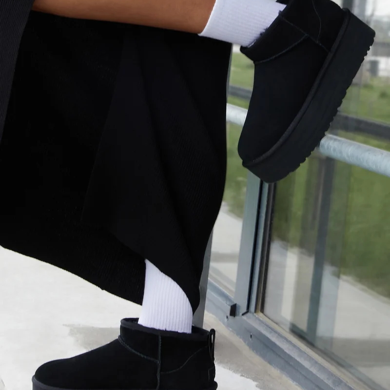This platform boot combines UGG’s classic warmth with a trendy, ankle-height profile perfect for elevating everyday outfits. Its lightweight construction, soft lining, and easy slip-on design make it a practical yet stylish option for women seeking a modern twist on the iconic Classic Mini. The Ultra Mini Platform is ideal for transitional seasons, urban styling, and comfortable daily wear.