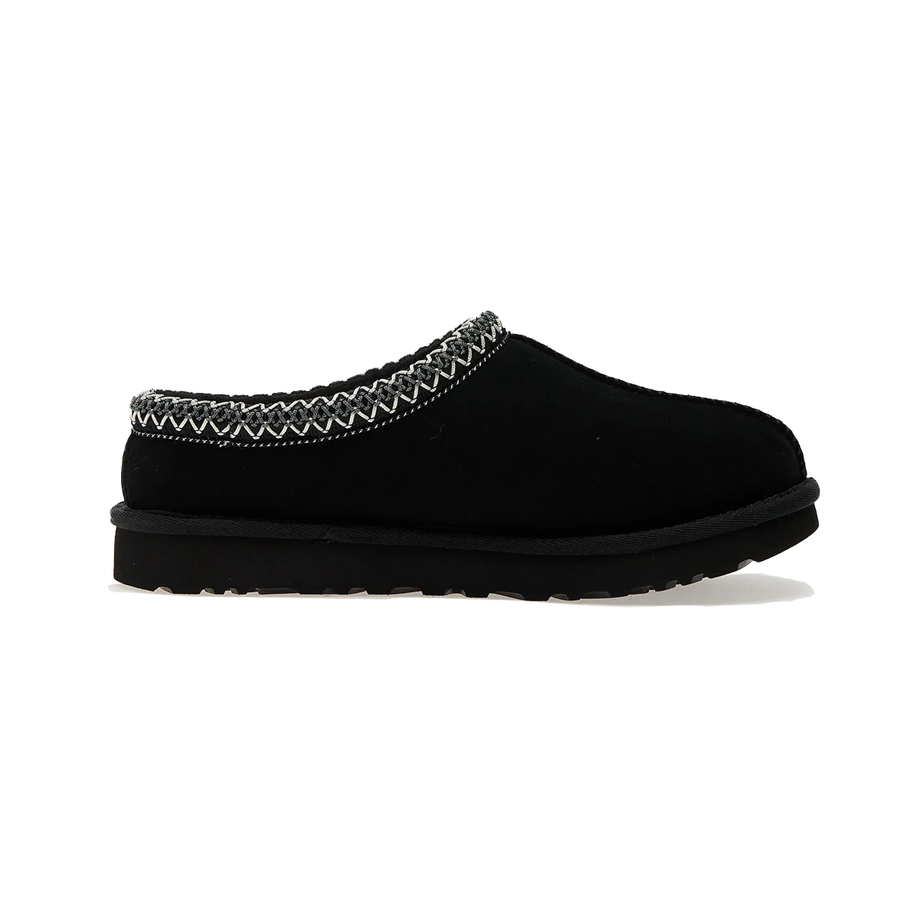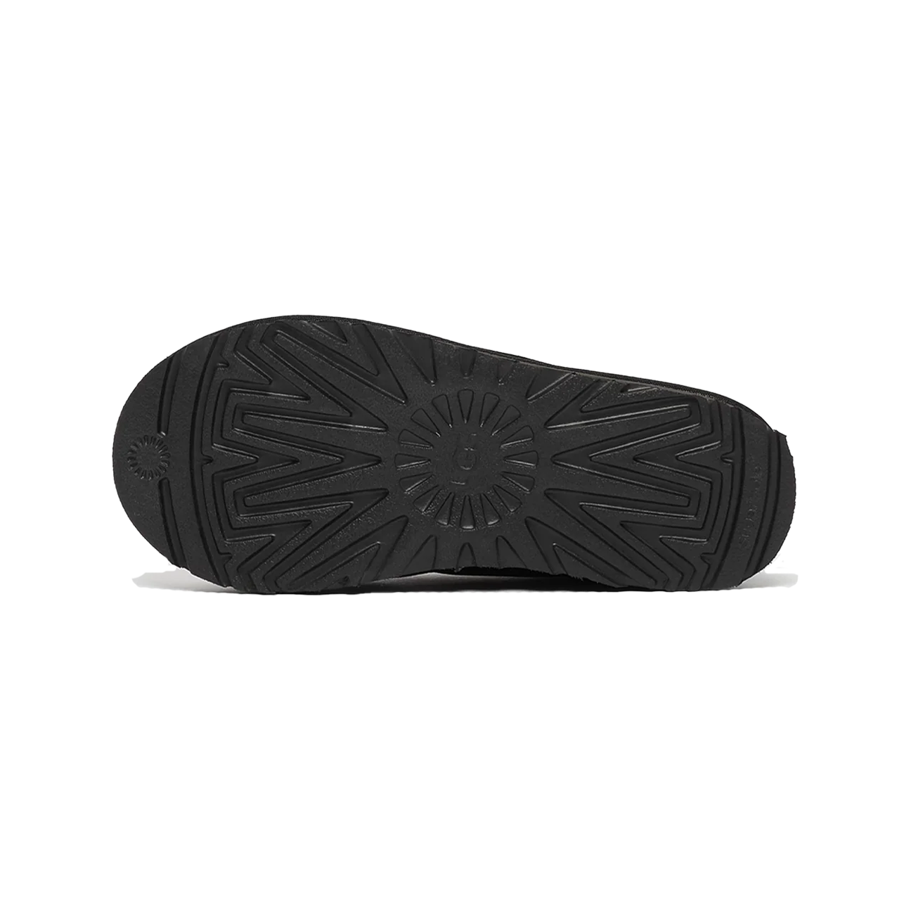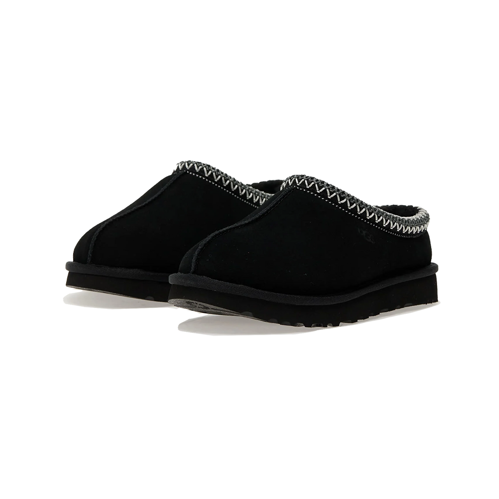The UGG Tasman II Slipper ‘Black’ (style 1174671-BLK) elevates one of UGG’s most iconic silhouettes with refined materials, improved comfort and a clean, versatile finish. Crafted from premium black suede and lined with soft UGGplush™ wool, this modern take on the classic Tasman offers warmth, support and everyday coziness. The signature Tasman braid adds a distinct crafted detail, while the upgraded SugarSole™ outsole delivers lightweight cushioning and durability for indoor comfort and effortless outdoor wear. With its all-black look, the Tasman II pairs seamlessly with loungewear, streetwear and laid-back daily outfits.