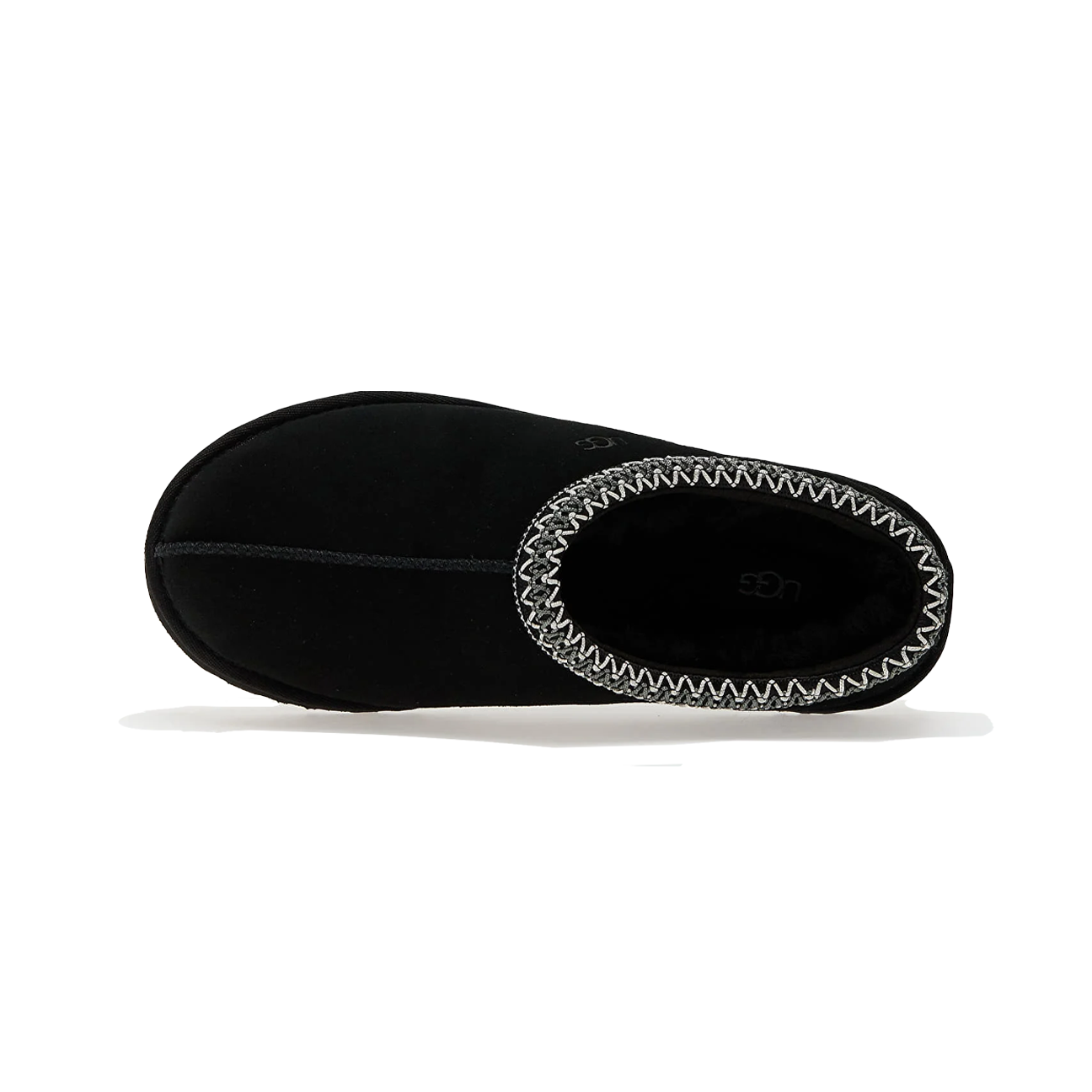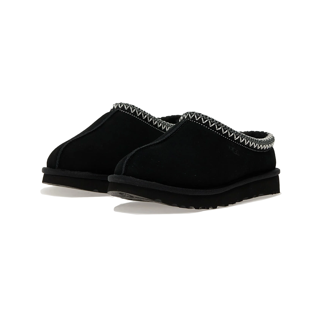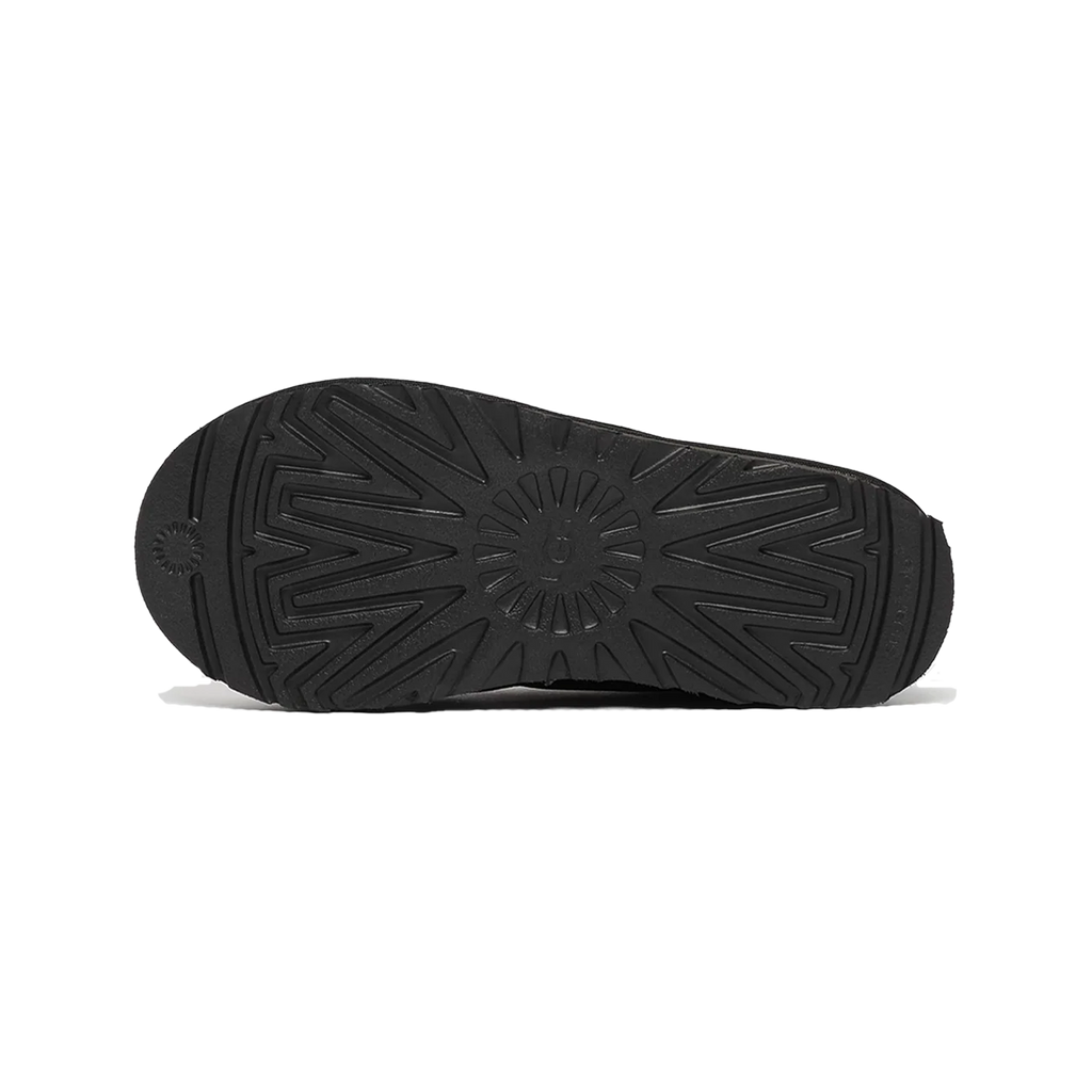 The UGG Tasman II Slipper ‘Black’ (style 1174671-BLK) elevates one of UGG’s most iconic silhouettes with refined materials, improved comfort and a clean, versatile finish. Crafted from premium black suede and lined with soft UGGplush™ wool, this modern take on the classic Tasman offers warmth, support and everyday coziness. The signature Tasman braid adds a distinct crafted detail, while the upgraded SugarSole™ outsole delivers lightweight cushioning and durability for indoor comfort and effortless outdoor wear. With its all-black look, the Tasman II pairs seamlessly with loungewear, streetwear and laid-back daily outfits.
