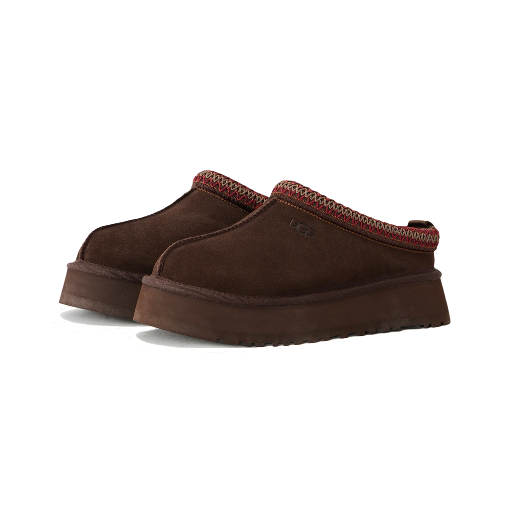 The UGG Tazz II Slipper ‘Dusted Cocoa’ (style 1174471-DDC) blends the iconic Tasman-inspired look with a modern elevated platform and premium comfort. Crafted from soft suede in a warm Dusted Cocoa tone and lined with plush UGGplush™ wool, this slipper delivers signature coziness with a stylish twist. The embroidered braid around the collar adds a classic UGG touch, while the 1.75-inch platform provides subtle height and a contemporary aesthetic. Ideal for both indoor comfort and outdoor versatility, the Tazz II pairs effortlessly with loungewear, casual fits and relaxed streetwear looks.