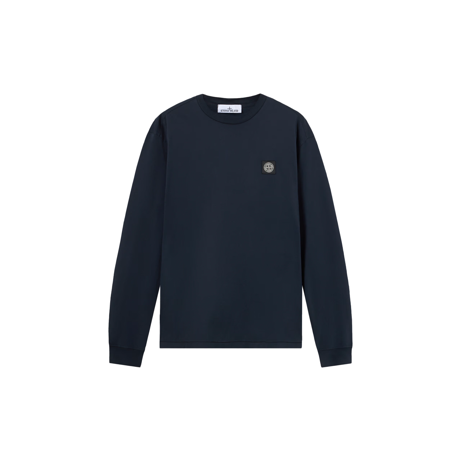 The deep navy blue base provides a timeless and sophisticated look, while the signature Stone Island compass logo delivers bold brand identity. Designed with a classic crewneck and ribbed cuffs, it maintains structure while ensuring easy wearability across casual and elevated outfits alike.