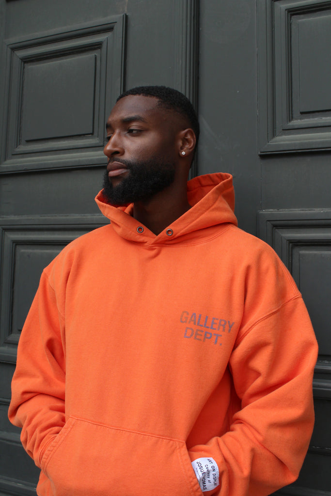 Geef je casual look een boost met de Gallery Dept. 90's GD Logo Hoodie in fel oranje, waar nostalgie hedendaagse mode ontmoet. Ideaal voor degenen die hun unieke stijl willen uiten en een statement willen maken, deze hoodie is een perfecte aanvulling op je streetwearcollectie. Stap vol vertrouwen en flair naar buiten en laat de gedurfde ontwerpen zien waar Gallery Dept. om bekend staat!