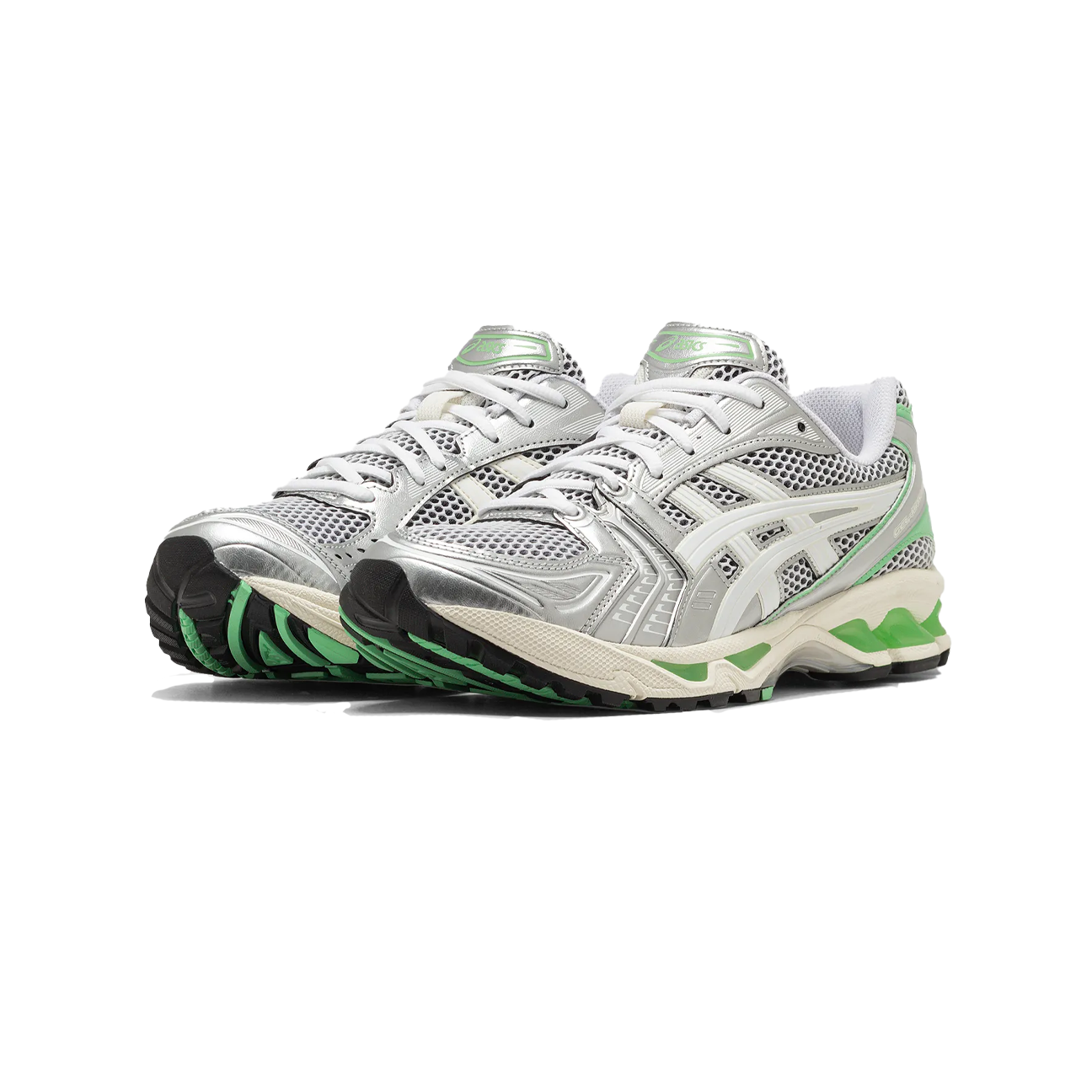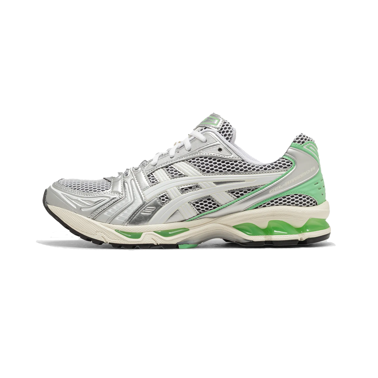 De ASICS GEL-Kayano 14 Silver Lime is een opvallende interpretatie van een van ASICS' meest gevierde hardloopschoenen. De schoen combineert metallic zilveren overlays met levendige limoenkleurige accenten voor een dynamische en moderne look. Het ademende mesh bovenwerk is versterkt met gelaagde synthetische panelen die structuur toevoegen en de sneaker tegelijkertijd licht en comfortabel houden. De felle limoenkleurige details accentueren de vloeiende lijnen van het ontwerp, waardoor het model een gedurfde maar veelzijdige esthetiek krijgt die gemakkelijk te combineren is met zowel sportieve als lifestyle-outfits. De dempende tussenzool met kenmerkende GEL-technologie onder de voet zorgt voor soepel comfort en duurzame ondersteuning voor dagelijks gebruik.