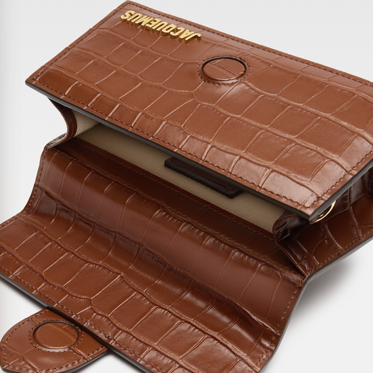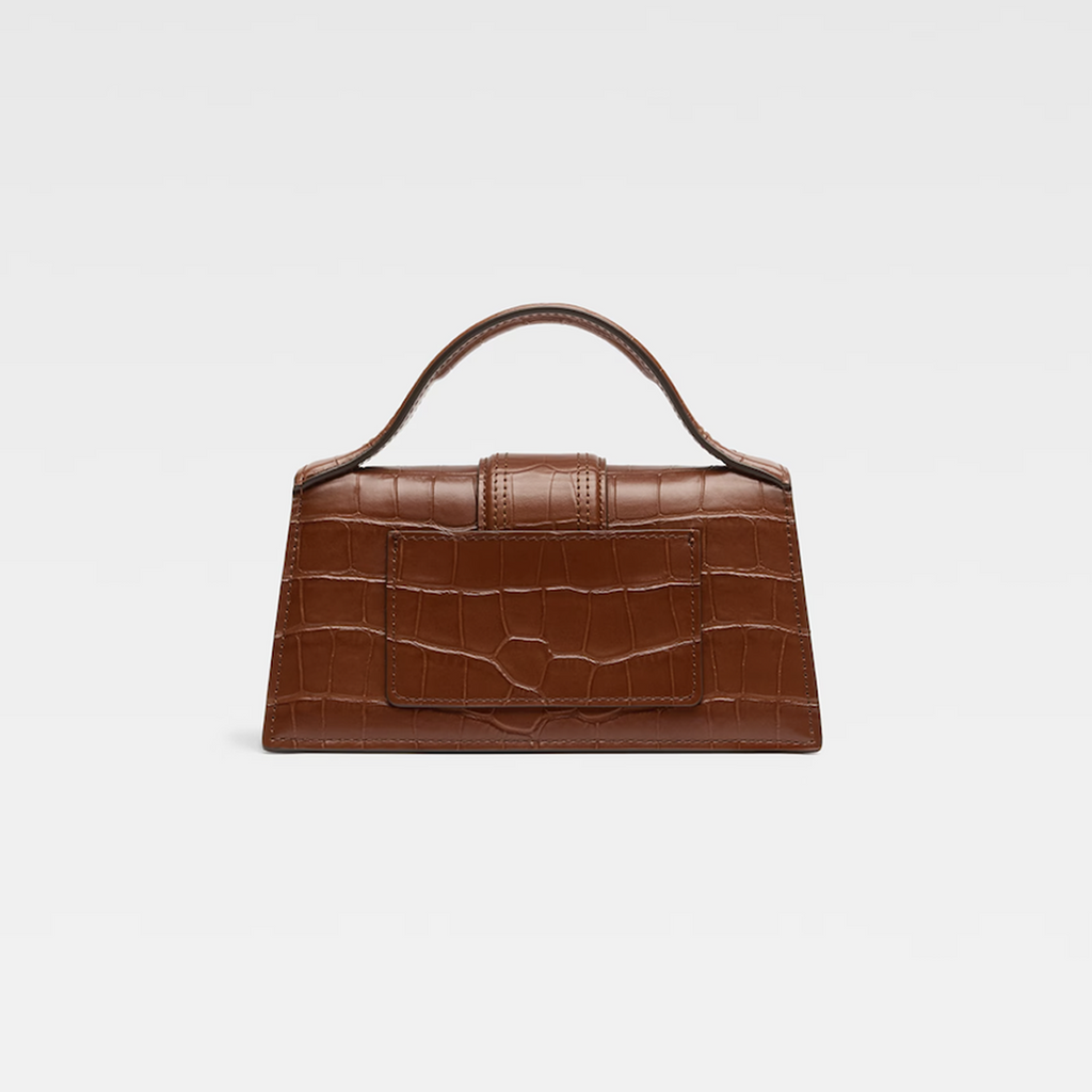 De Jacquemus Le Bambino ‘Crocodile Brown’ (stijl 213BA006-3223-850) is een compacte, luxe handtas die modern design combineert met een rijke croc-embossed textuur. Gemaakt van premium kalfsleer met een gedetailleerd krokodillenreliëf, straalt dit model kracht, elegantie en verfijning uit. De magnetische flap, het strakke silhouet en de gewatteerde top-handle benadrukken de high-end uitstraling. Met een formaat van ongeveer 17 × 9 cm biedt de tas ruimte voor jouw belangrijkste essentials, terwijl het compacte ontwerp een verfijnde en tijdloze look behoudt.