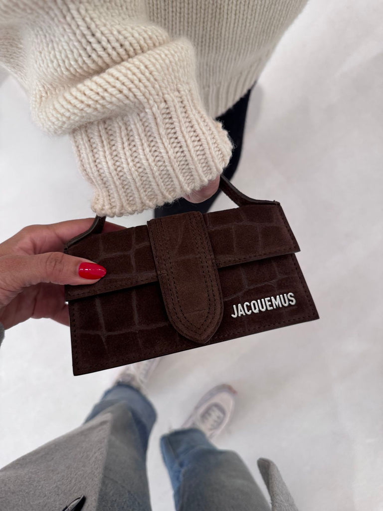 De afneembare en verstelbare schouderriem geeft je meerdere draagopties — als crossbody, schoudertas of handtas — waardoor de Le Bambino perfect geschikt is voor elke gelegenheid. Deze donkerbruine uitvoering in Crocodile-embossed leather is geliefd onder liefhebbers van luxe designer bags en vormt een veelzijdige aanvulling op zowel zakelijke looks als avondoutfits. Dankzij de hoogwaardige materialen en het herkenbare Jacquemus-design is dit een tas die jarenlang met stijl gedragen kan worden.