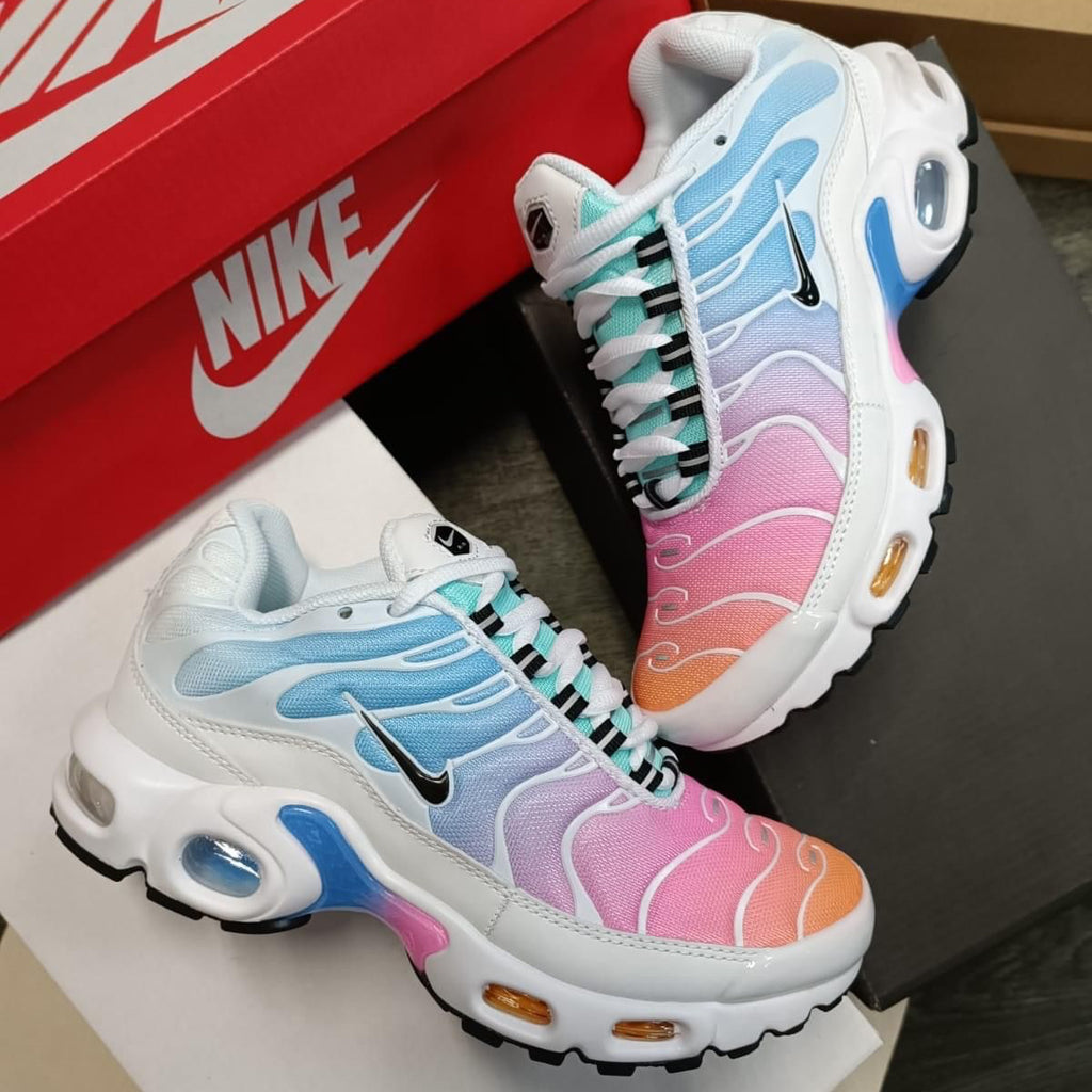 De Nike Air Max Plus Summer Gradient (W) (style 605112-115) brengt de iconische TN-silhouette opnieuw tot leven met een levendige, zomerse kleurstelling voor dames. Het ademende mesh bovenwerk met TPU-cage overlays biedt stabiliteit, lichtgewicht comfort en de kenmerkende Tuned Air-demping in de zool. Het gradient-design loopt vloeiend van warme zonsondergangtinten naar zachte neutrale kleuren, wat een opvallende maar draagbare look creëert. Perfect voor vrouwen die een modieuze en comfortabele sneaker willen voor dagelijks gebruik.