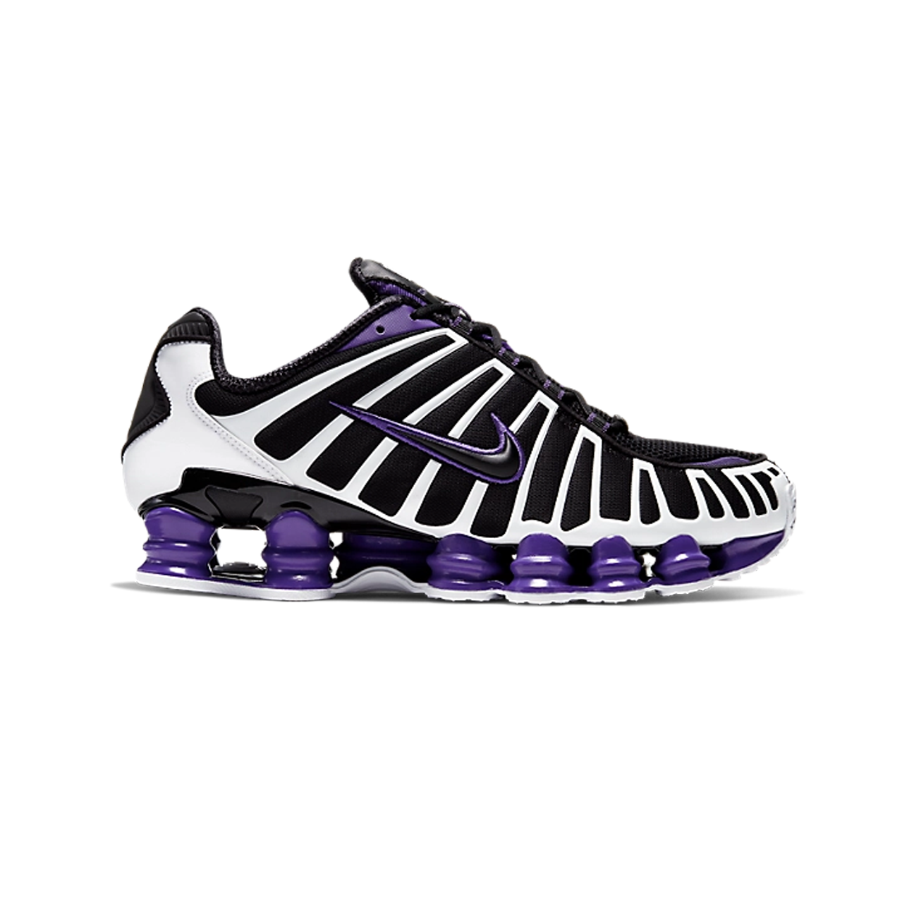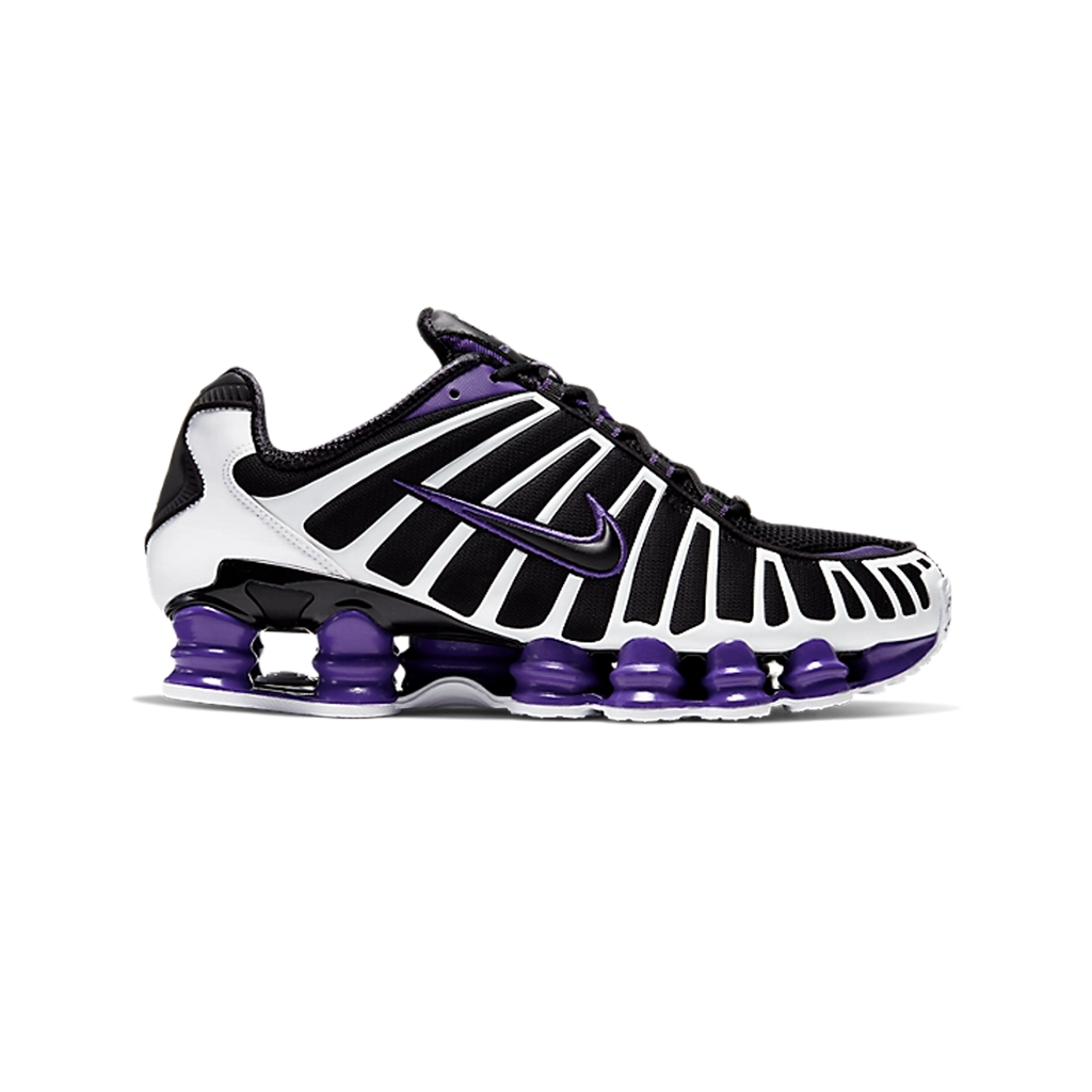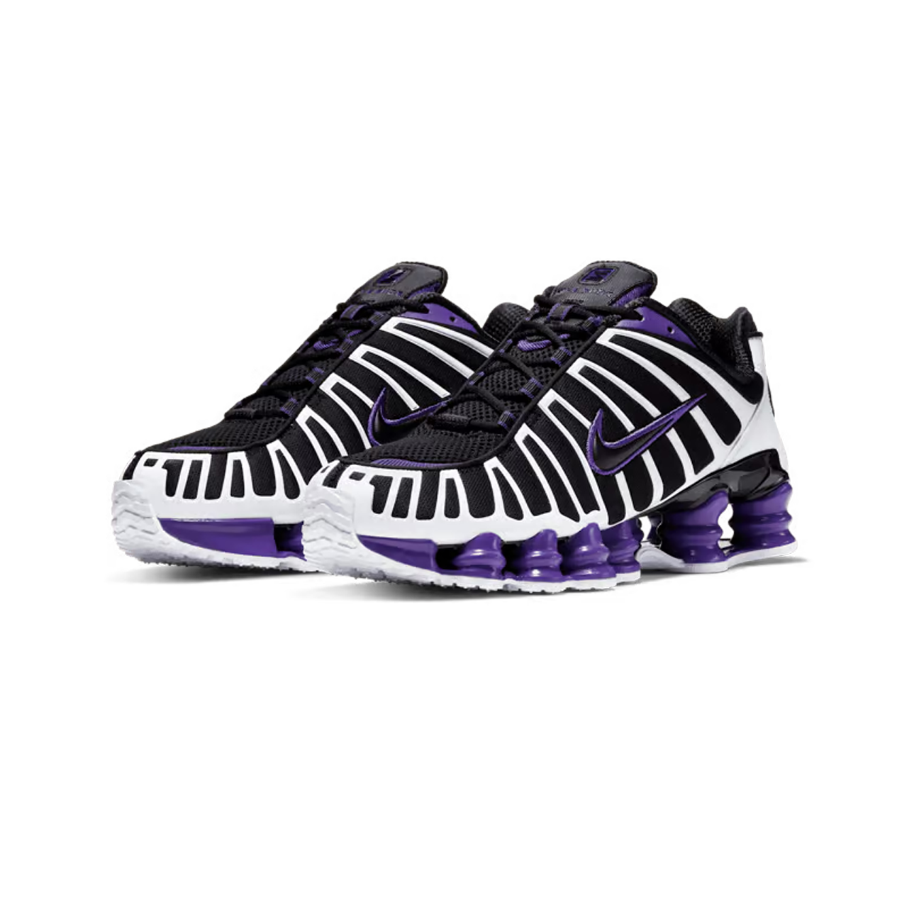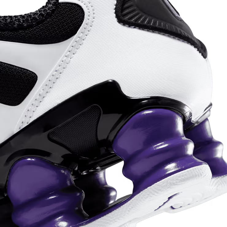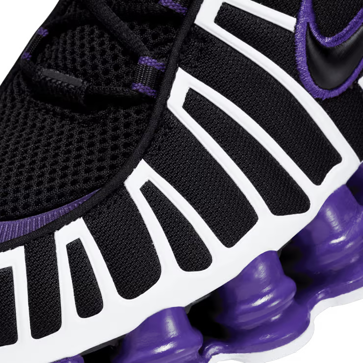 De Nike Shox TL Persian Violet (style AV3595-008) brengt een van Nike’s meest futuristische en opvallende silhouetten opnieuw onder de aandacht. Het ademende mesh bovenwerk, gecombineerd met gevormde TPU-overlays, biedt stabiliteit en ventilatie terwijl de kenmerkende Shox-kolommen over de volledige zool zorgen voor een energieke en responsieve demping. De krachtige Persian Violet accenten vormen een stijlvol contrast met de zwarte en metallic details, waardoor deze sneaker perfect past binnen streetwear, techwear en sportieve lifestyle outfits. Voor wie op zoek is naar een unieke look met maximaal comfort, blijft deze Shox TL een waar statement.