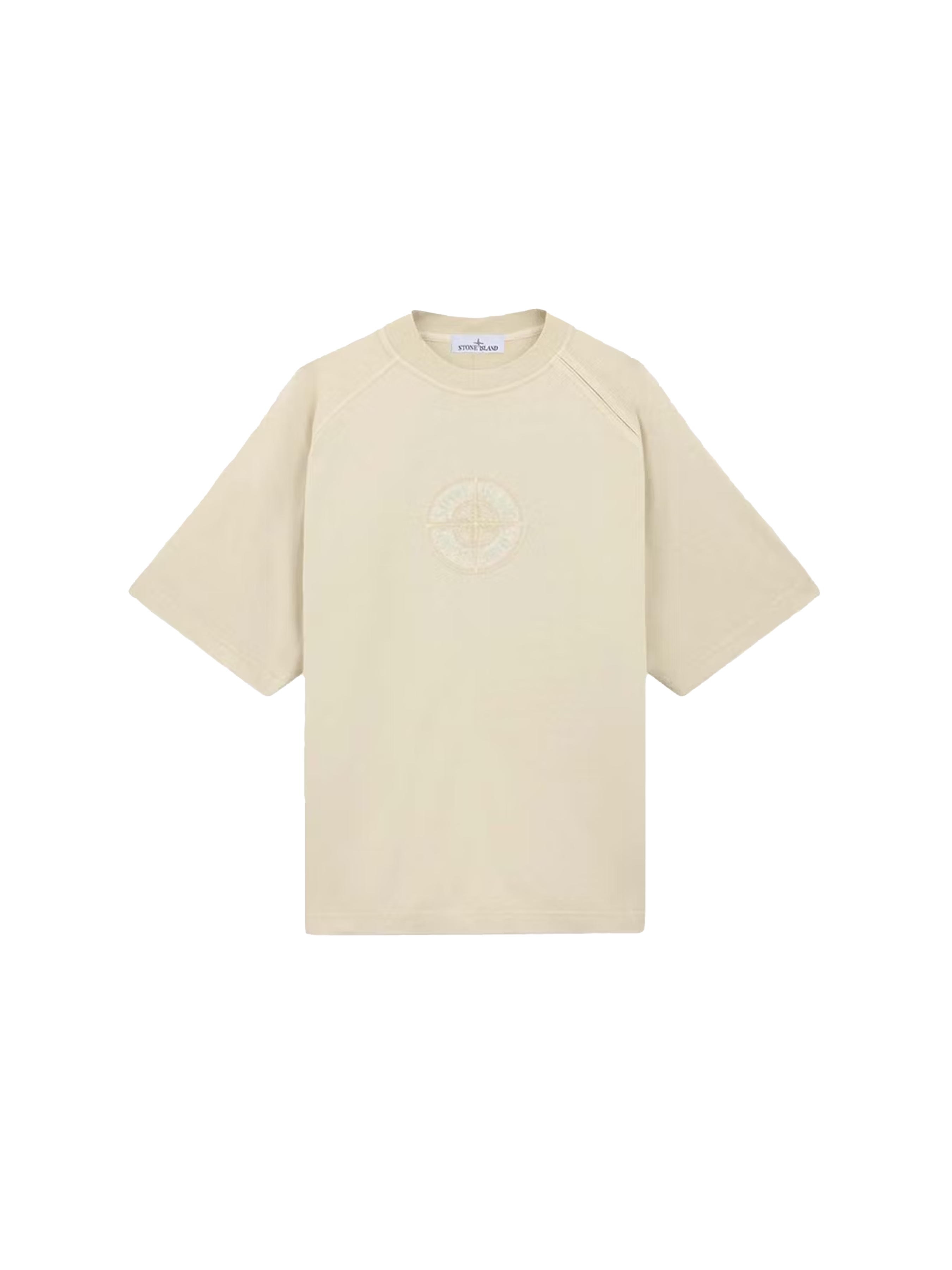 De Stone Island biologische katoenen jersey in beige is een typisch kledingstuk dat duurzaamheid combineert met hoogwaardig vakmanschap en een eigentijdse stijl. Dit T-shirt is gemaakt van 100% biologisch katoen en is niet alleen zacht en comfortabel, maar ook milieuvriendelijk, wat de toewijding van het merk aan verantwoorde mode weerspiegelt.