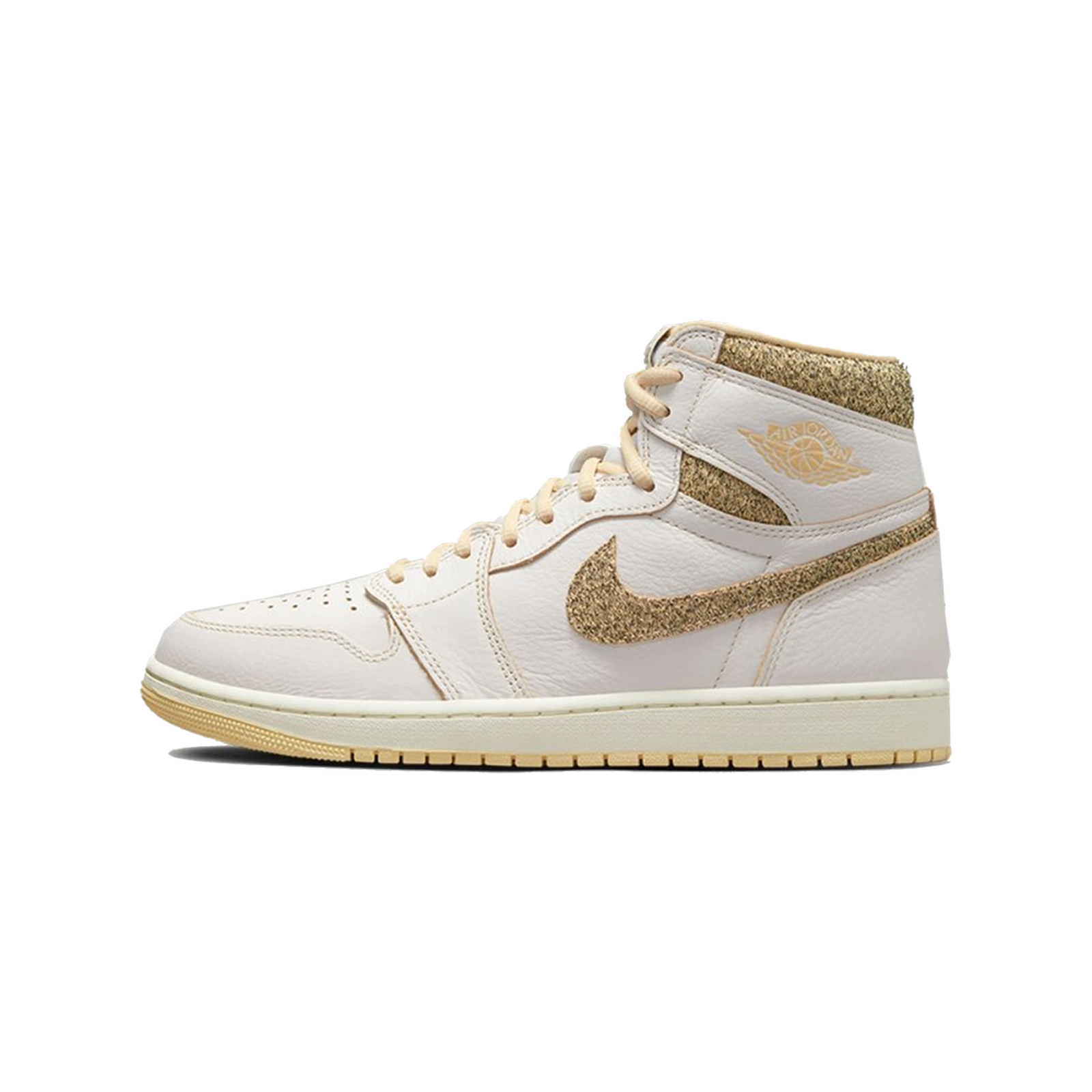 De Air Jordan 1 Retro High OG 'Craft - Vibrations of Naija' heeft een subtiele kleurstelling met een gebroken wit bovenwerk van getrommeld leer, geaccentueerd door een Pale Vanilla Swoosh met zwarte spikkels. Deze unieke details worden gecompleteerd door een duurzame gebroken witte rubberen cupzool met een crèmekleurige buitenzool, wat zorgt voor een tijdloze look met een vleugje flair.