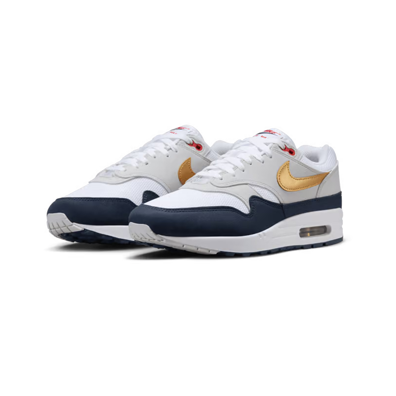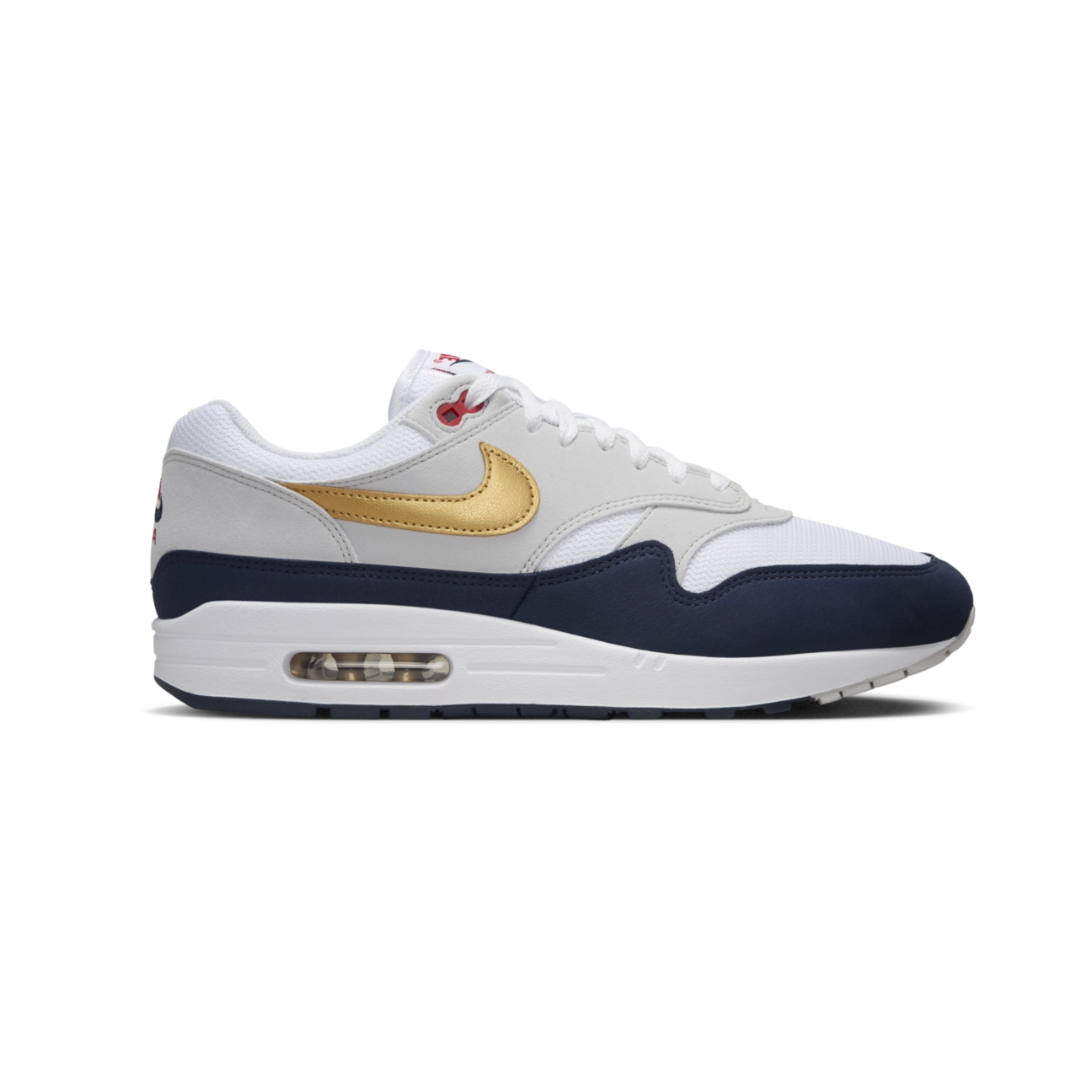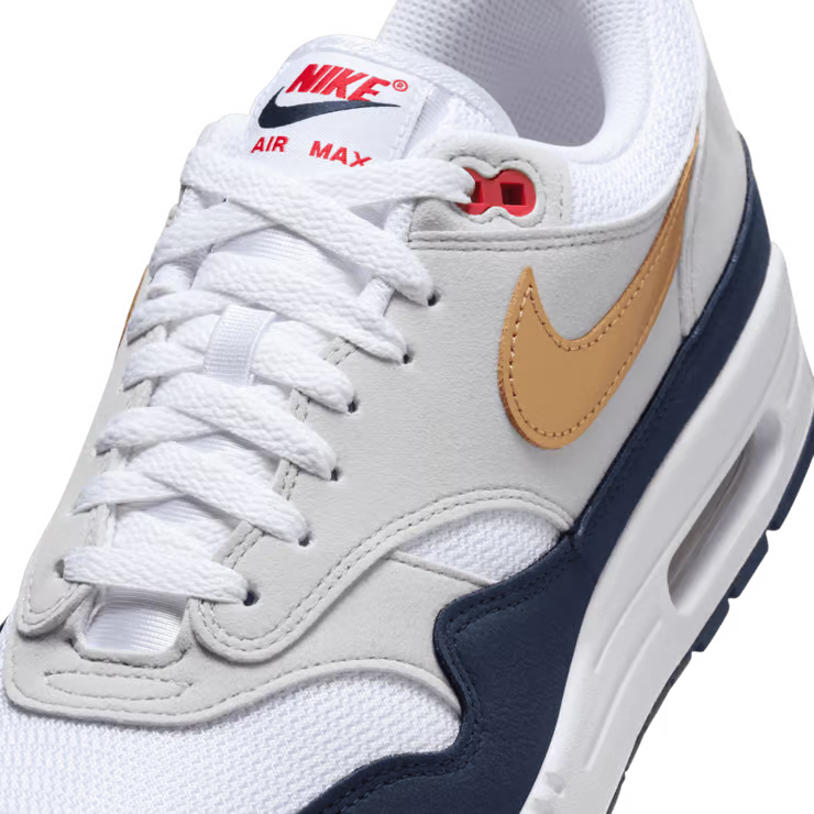 Het bovenwerk combineert mesh en suède overlays voor een comfortabele en ondersteunende pasvorm. De zichtbare Air unit in de zool biedt demping en comfort bij elke stap, terwijl het tijdloze Air Max 1 design trouw blijft aan zijn heritage. De Olympic colorway is ideaal voor wie houdt van sportieve stijl met iconische details.