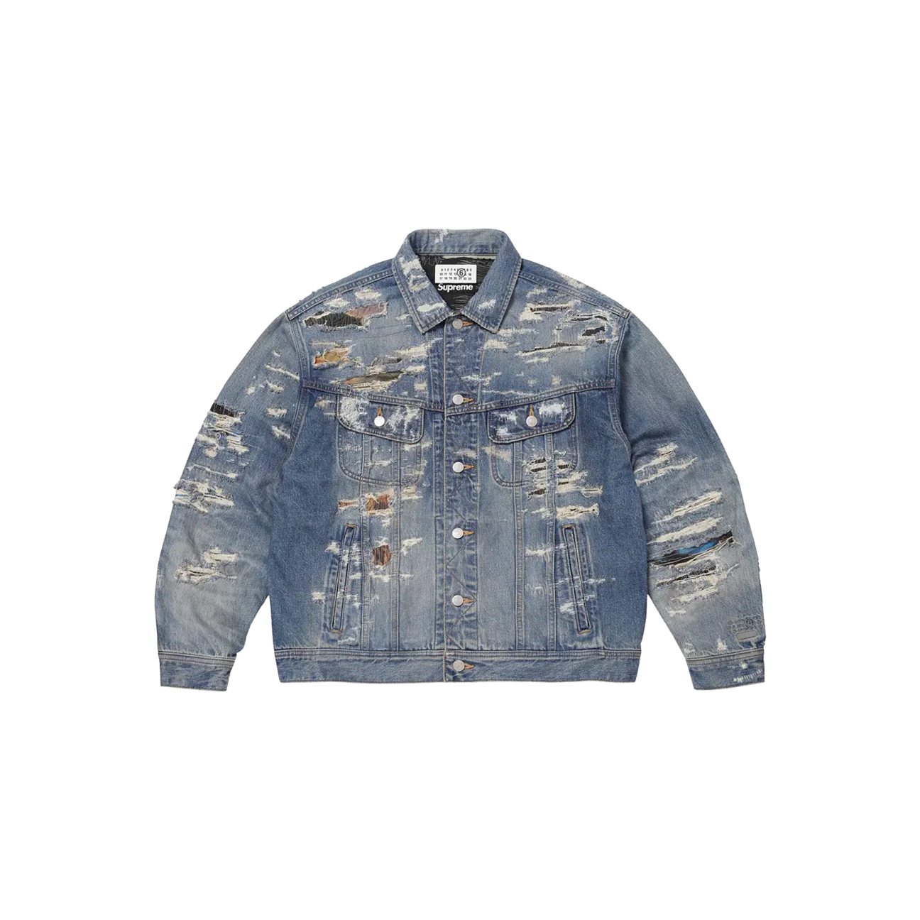 Supreme x MM6 Maison Margiela Distressed Selvedge Denim Trucker Jacket 'Blue'