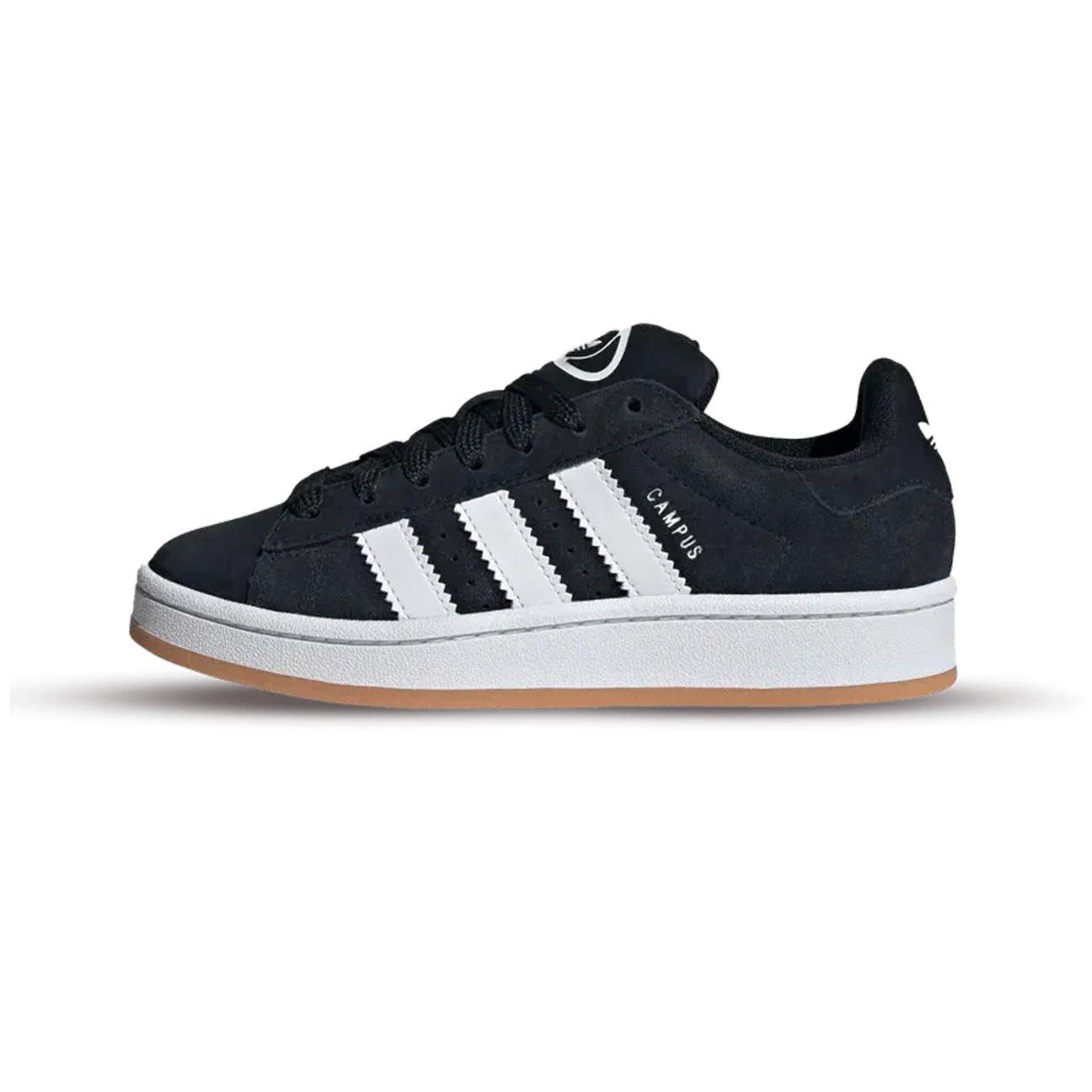 The Adidas Campus 00s Black White Gum (GS) is a standout sneaker for kids, perfect for any occasion. This re-released classic from the 00s features a black suede upper with contrasting white leather stripes and heel tab. The thick rubber gum sole ensures durability and grip, making this shoe ideal for active children. The Adidas logo on the tongue and heel adds a stylish touch to this timeless sneaker. The Adidas Campus 00s Black White Gum (GS) is a versatile and stylish choice for any young sneaker enthusiast.
