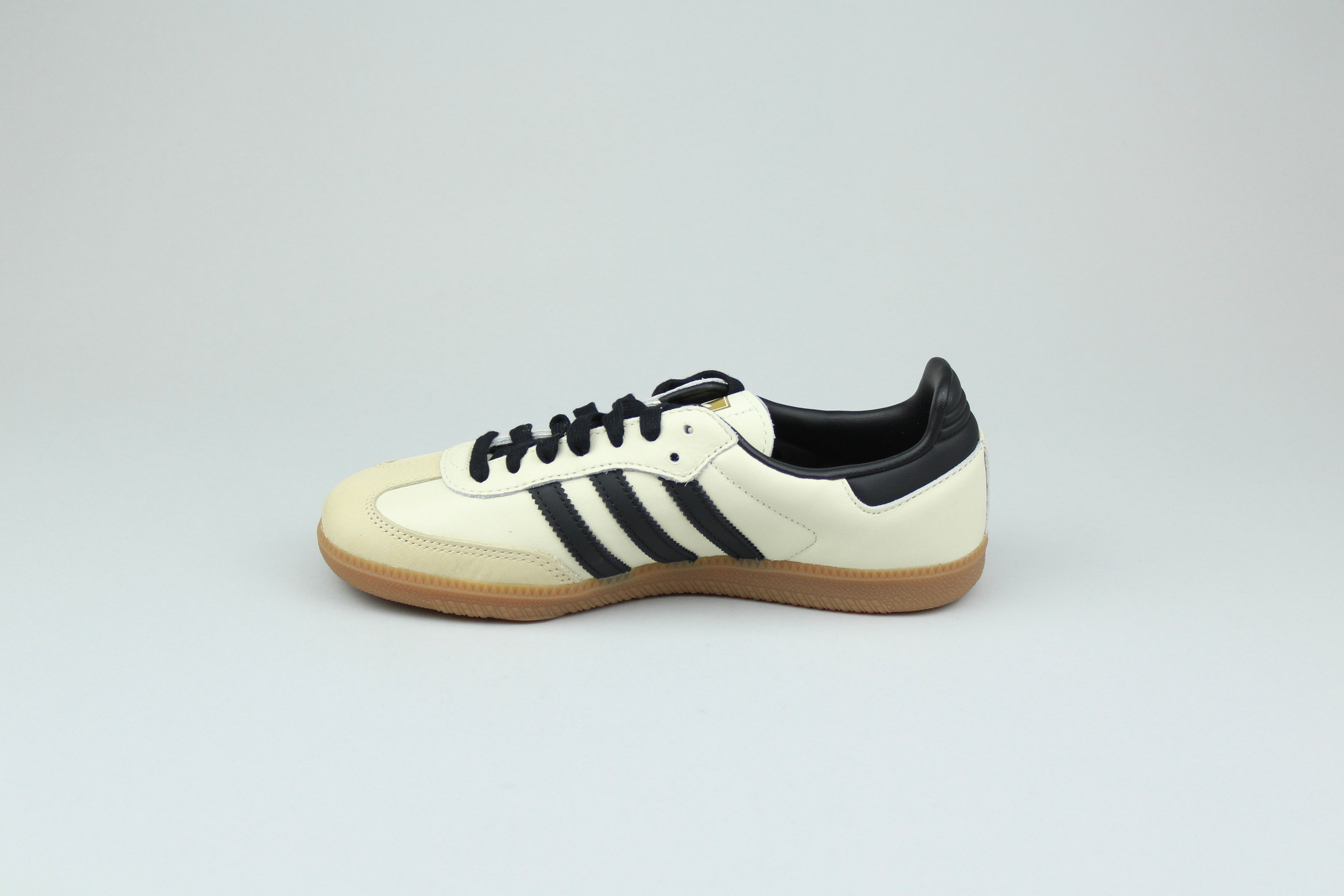 Step into timeless style with the Adidas Samba OG in the elegant 'Cream White & Sand Strata' colorway for women. Celebrated for its classic silhouette and superior comfort, this iconic sneaker is a perfect blend of heritage and modern fashion.