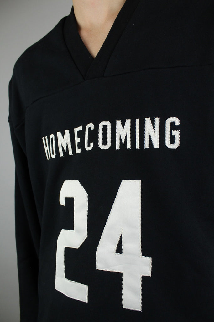 The sleek black colorway provides a timeless backdrop that enhances the overall design, making it easy to pair with a variety of bottoms, from joggers to jeans. The hockey jersey silhouette features a stylish mock neck and a relaxed fit, allowing for easy layering and effortless styling.
