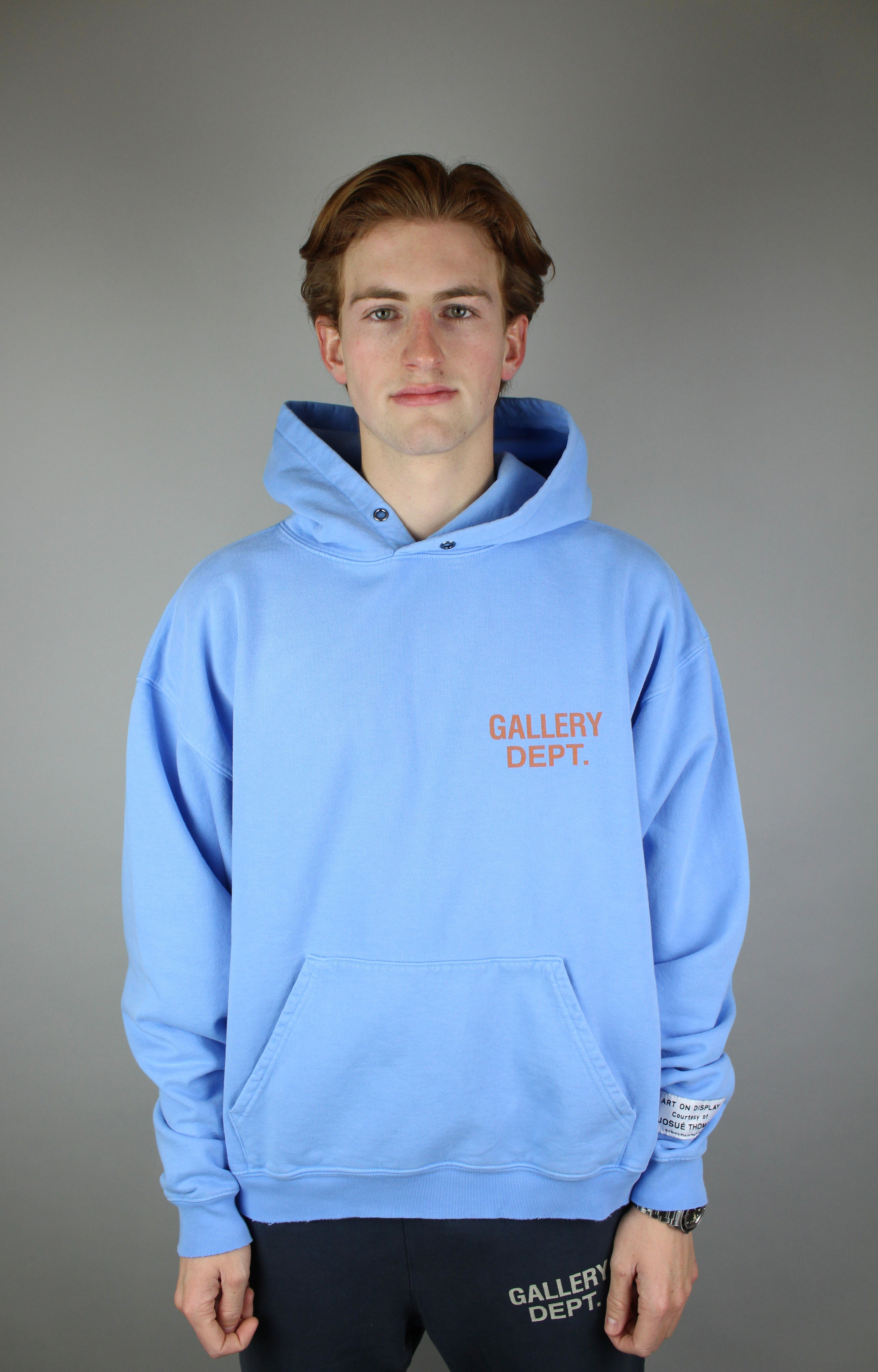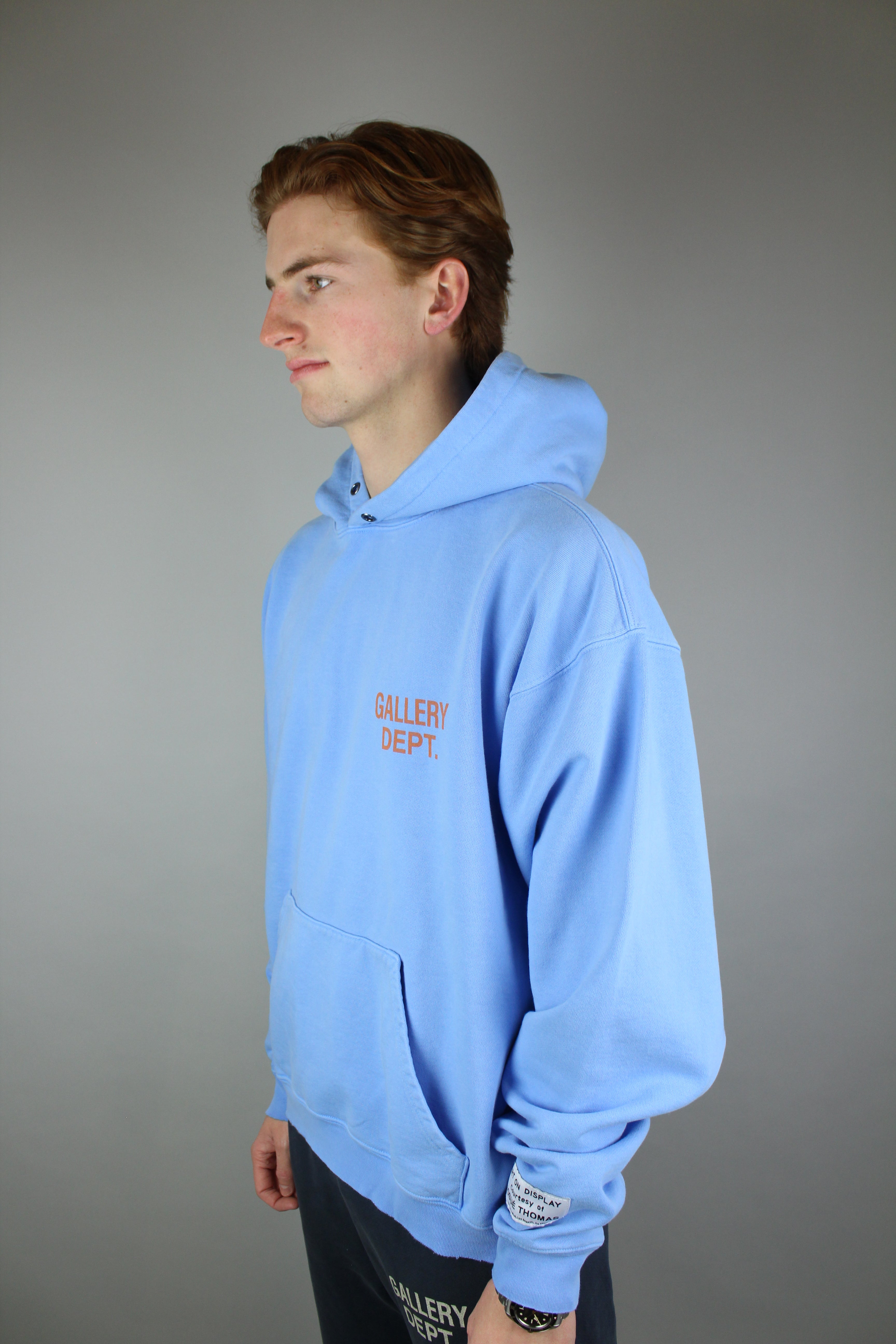 Elevate your casual wardrobe with the Gallery Dept. 90's GD Logo Hoodie in Baby Blue—a perfect blend of comfort, style, and distinctive design. This hoodie is not only a reflection of your unique taste in fashion but also a celebration of the artistic spirit that defines Gallery Dept. Step out comfortable and confident, showcasing a piece that honors the past while staying relevant in today’s streetwear scene.