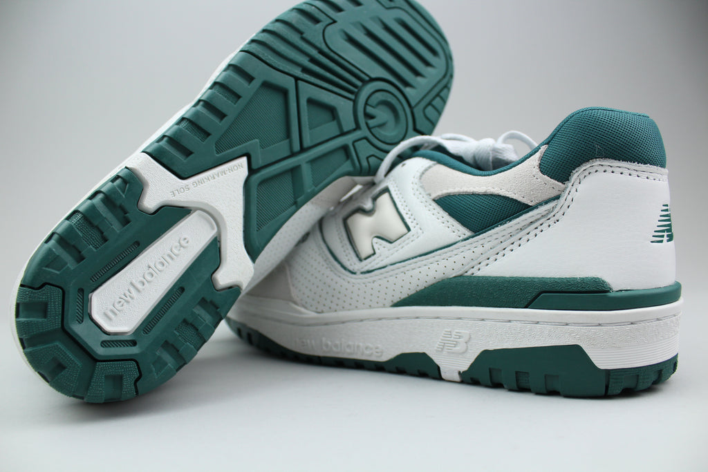 The New Balance 550 'Vintage Teal Green' is a nostalgic yet contemporary sneaker that brings a fresh vibe to the classic basketball silhouette. With its rich vintage teal green upper crafted from premium leather, this sneaker captures the essence of 80s style while embodying modern comfort and functionality.