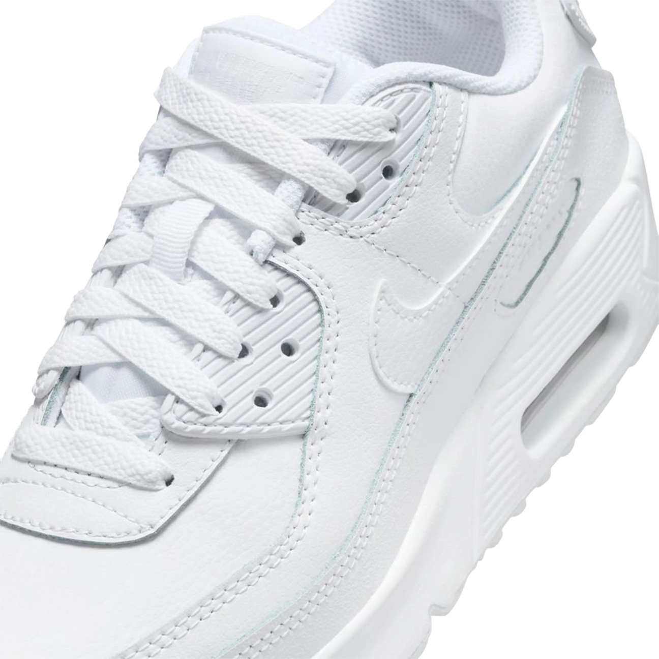 Nike Air Max 90 Recraft Triple White is a modern refinement of one of the most iconic silhouettes in sneaker history. This edition stays true to the original nineties design while updating the construction for a cleaner, sharper look. Built with a premium combination of mesh, leather and synthetic overlays, the sneaker delivers durability, breathability and structured layering. The all white colourway enhances its minimalist aesthetic, making it a versatile essential for everyday wear. Finished with the signature visible Air unit in the heel, this model offers reliable comfort with timeless appeal.