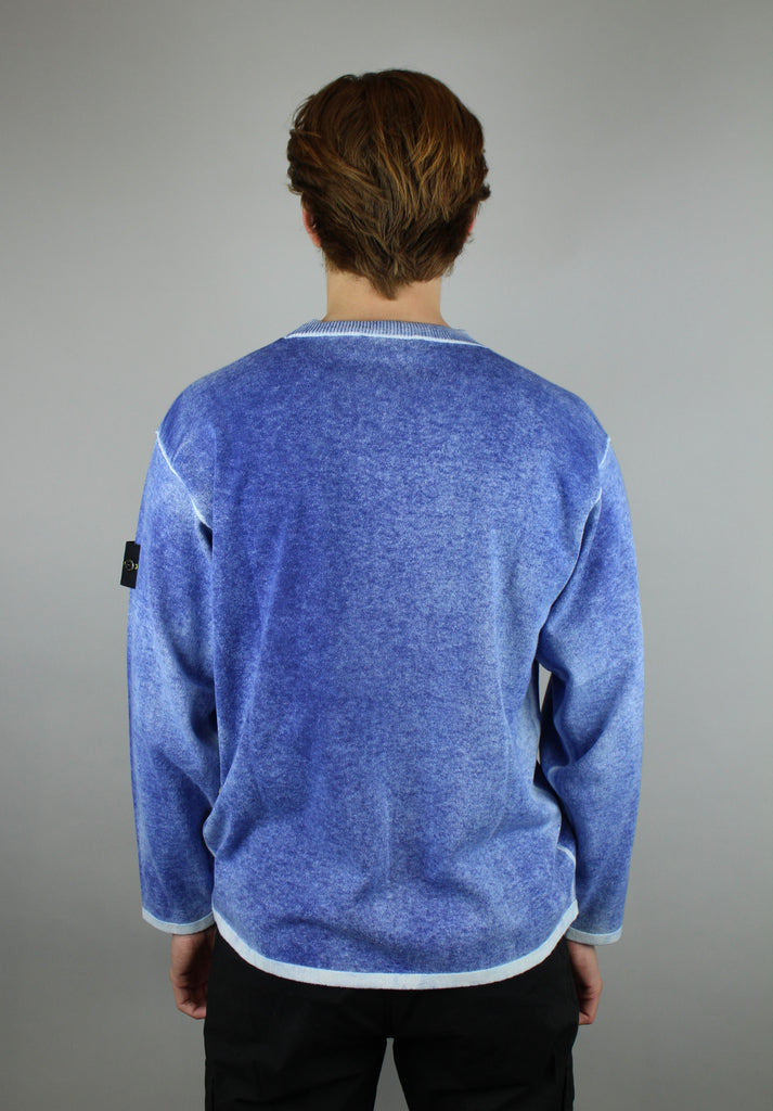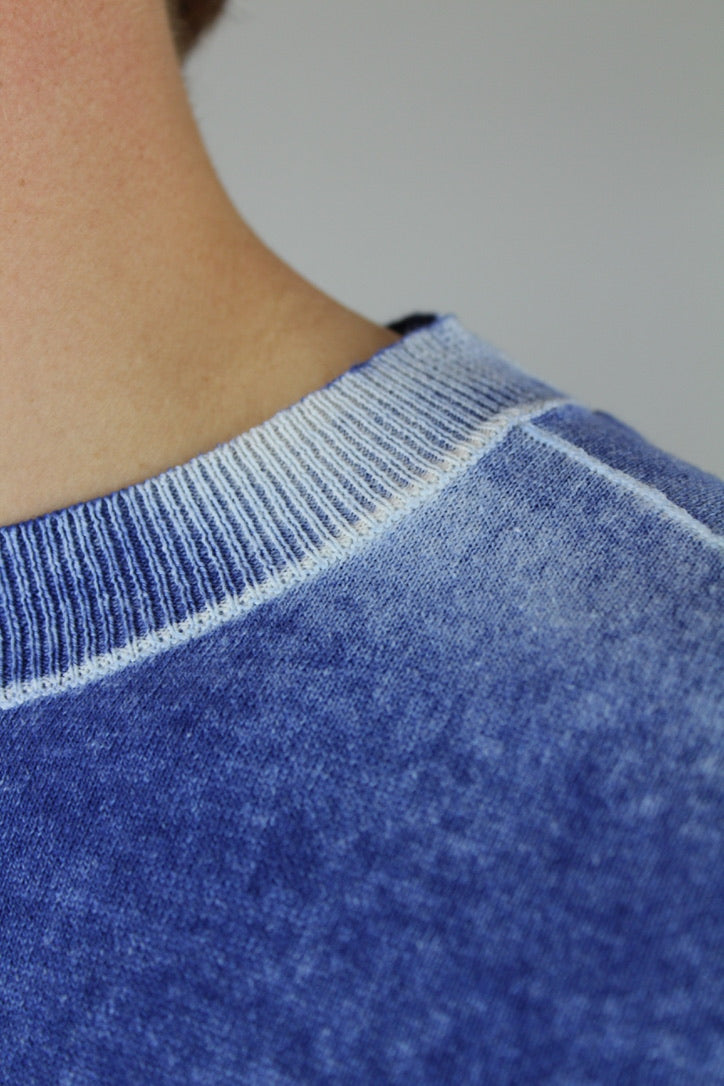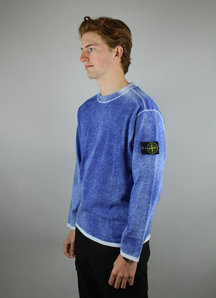 The raw handfinish adds a unique texture and artisanal feel, setting it apart from traditional crewnecks. The rich blue color provides a vibrant, versatile touch that can easily be paired with your favorite trousers or denim for a casual look.