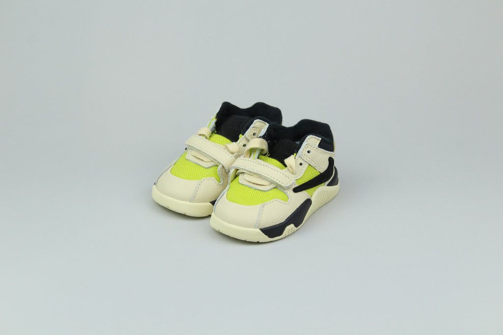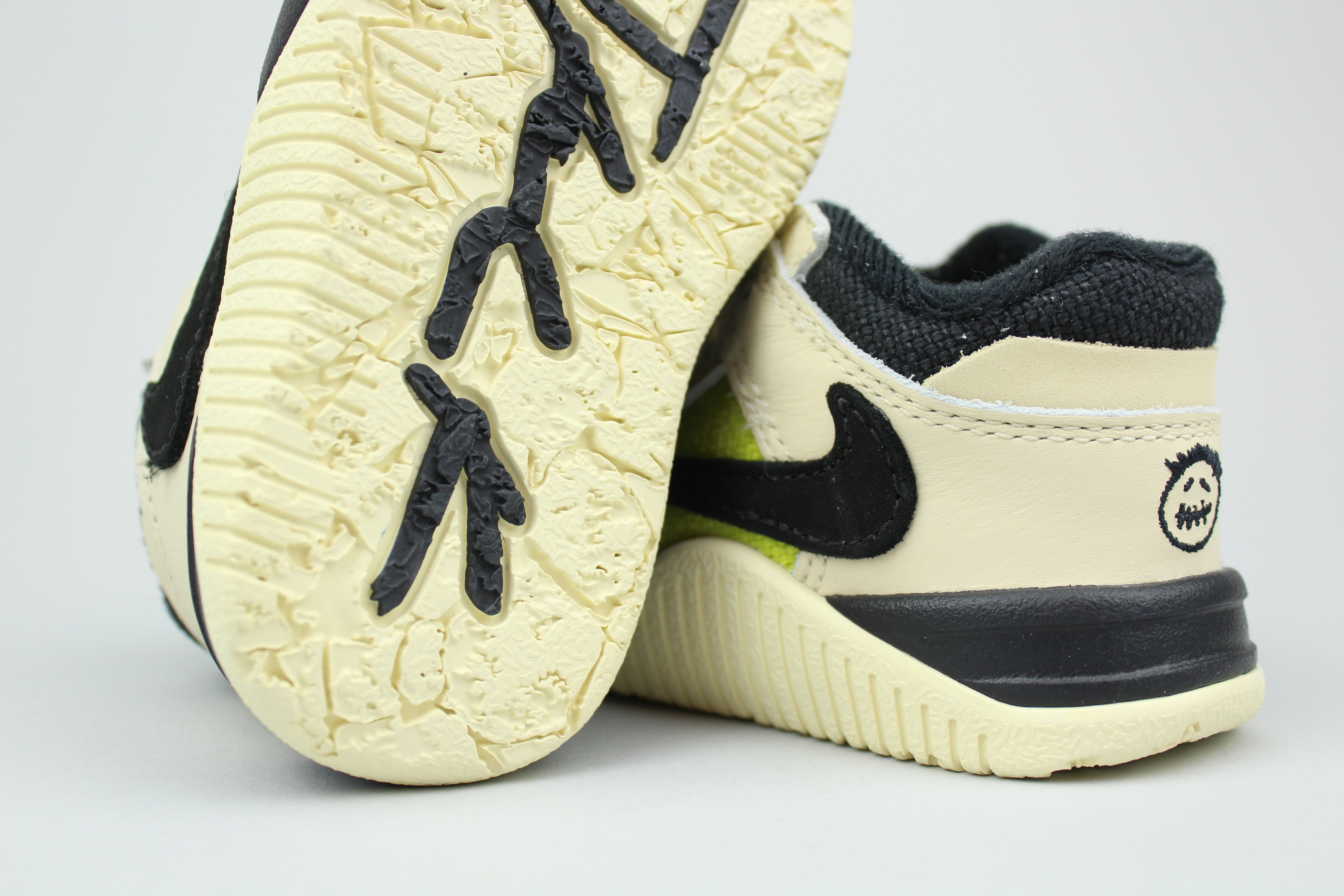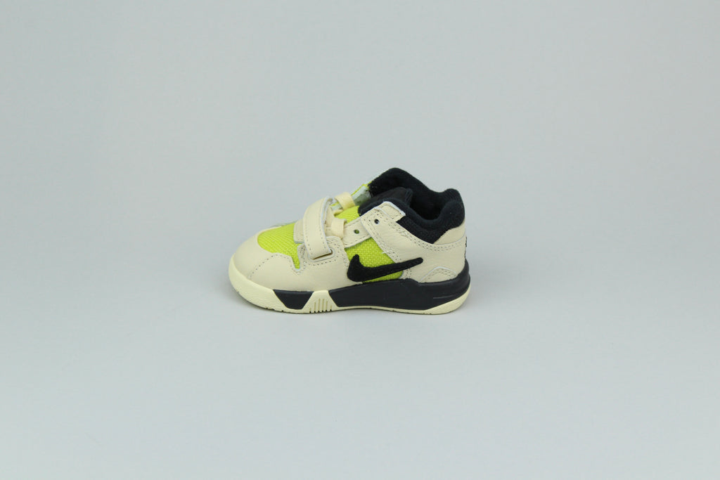 The Travis Scott x Jordan Jumpman Jack Bright Cactus TD (style FJ2852-102) is a standout toddler sneaker that mirrors the same bold design language as the adult version. The upper is built from a mix of canvas and leather in muslin, black and the signature Bright Cactus green. Soft padding, rounded shaping and an easy hook and loop closure ensure comfort and convenience for young wearers. Despite its small size, it retains the recognizable Cactus Jack detailing and the sculpted outsole.