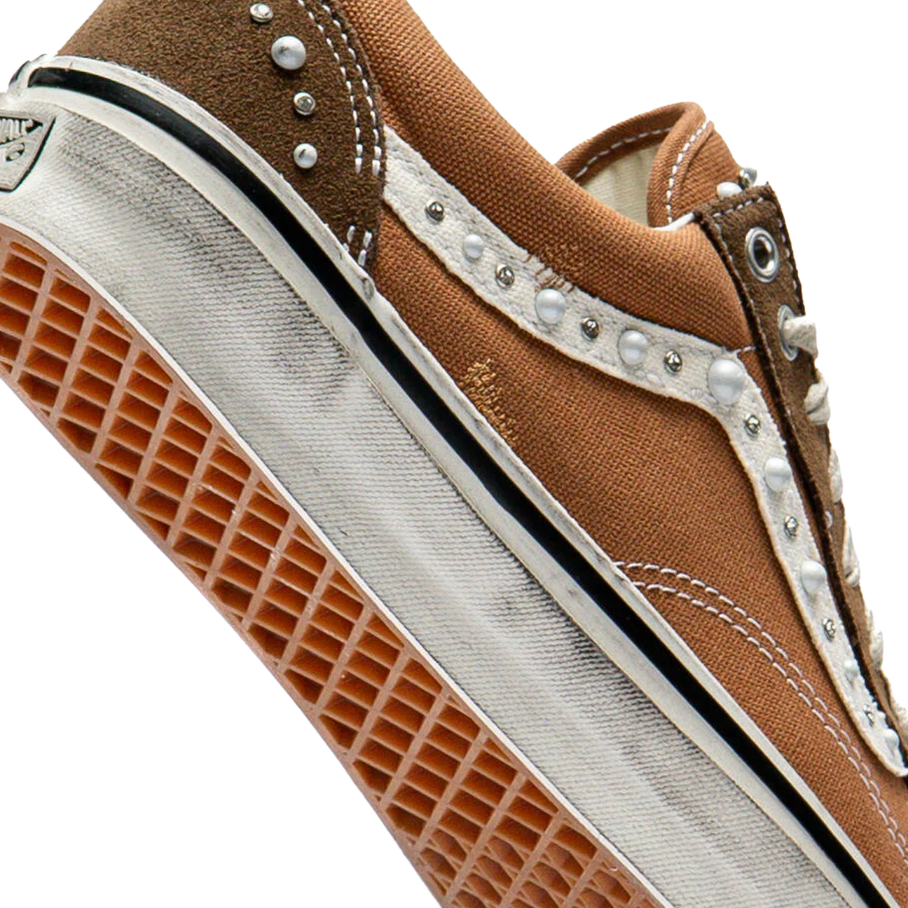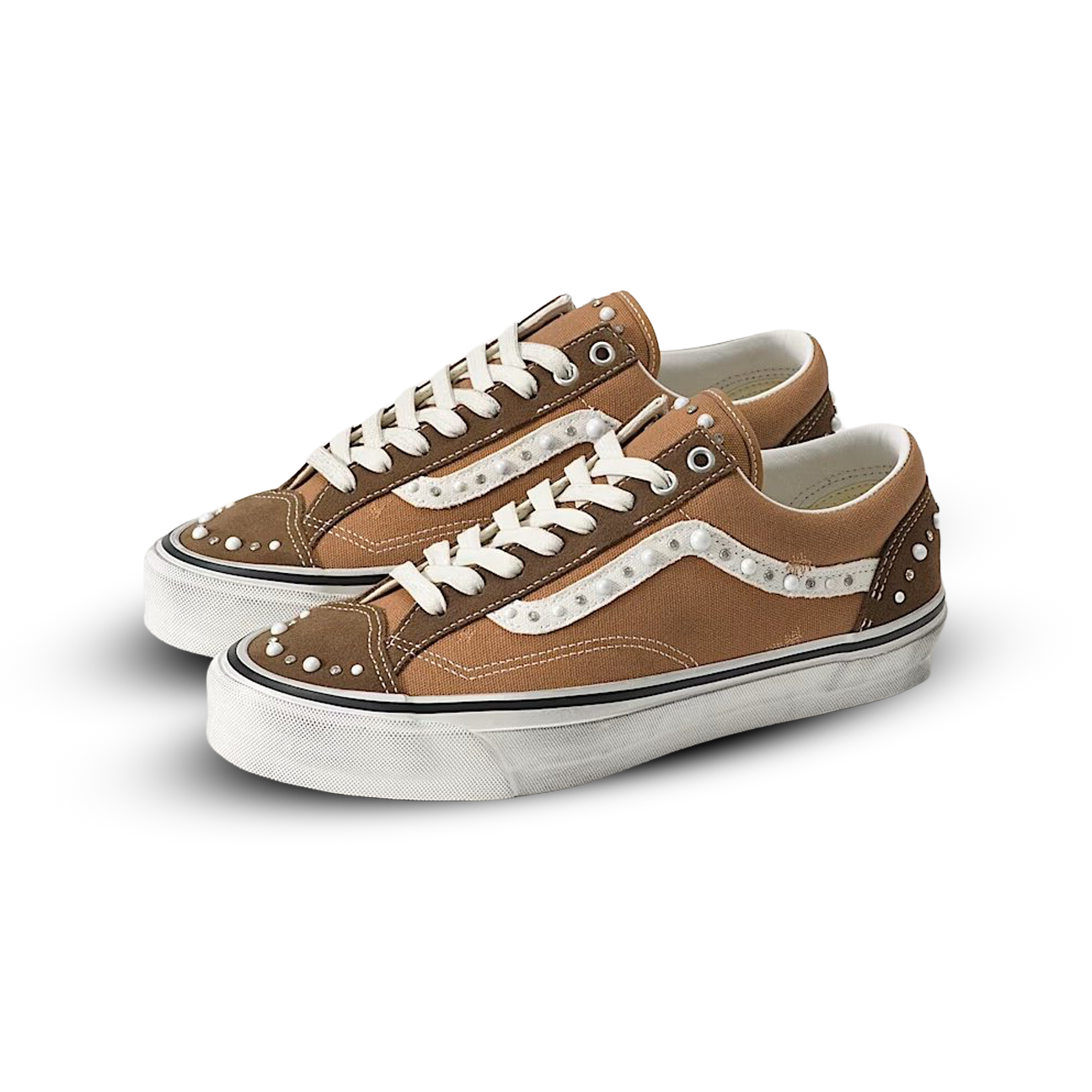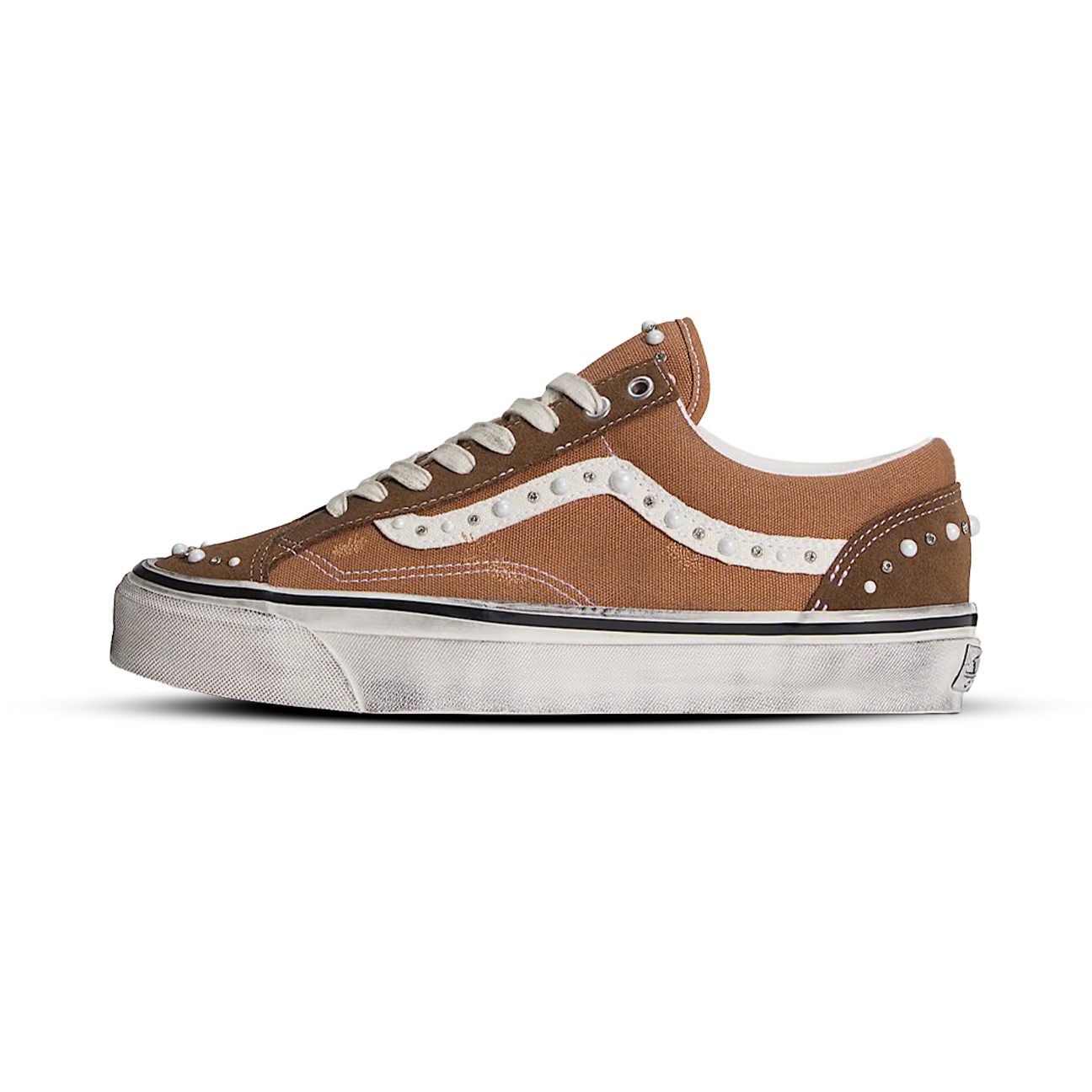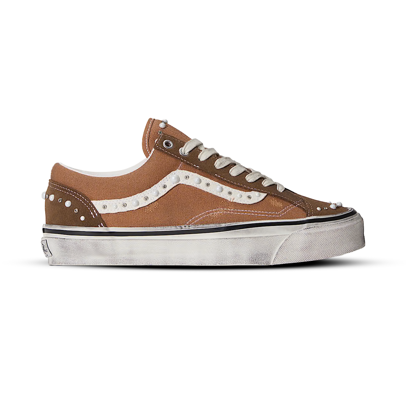 The Vans LX Old Skool 36 Pearlized Pack Brown is a refined update of a true skate classic, combining heritage design with elevated materials. Crafted from premium materials, the sneaker features a rich brown base enhanced by pearlized accents that add a subtle glossy finish. The iconic side stripe remains central to the design, while the durable construction and padded collar ensure comfort and support for everyday wear. This pair is perfect for those who appreciate timeless silhouettes with a modern and elevated twist.